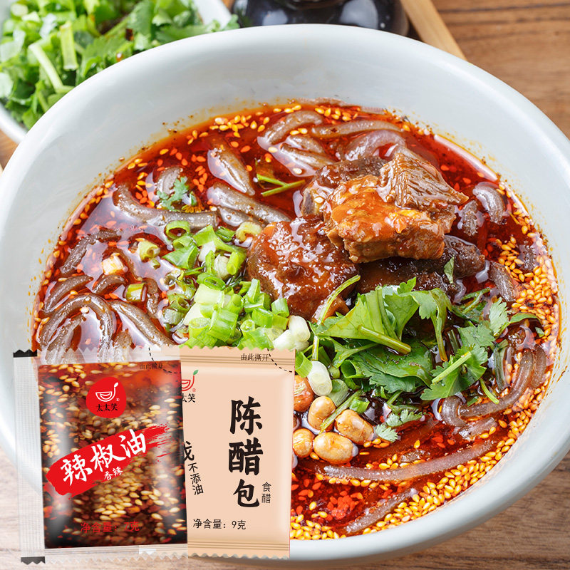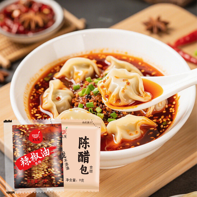 太太笑辣椒油外卖小包装醋包商用组合900+900饺子凉拌酸辣粉调料