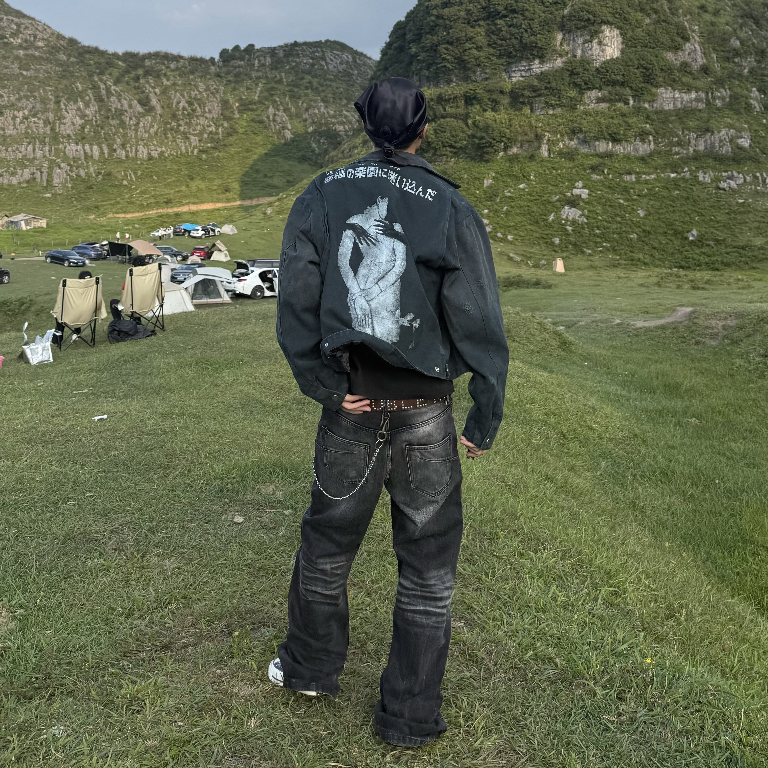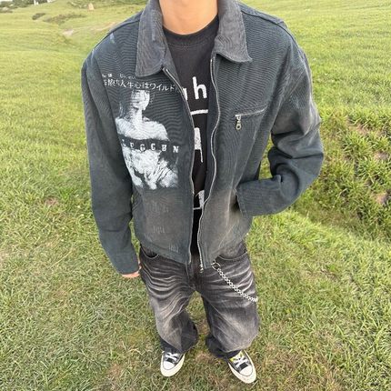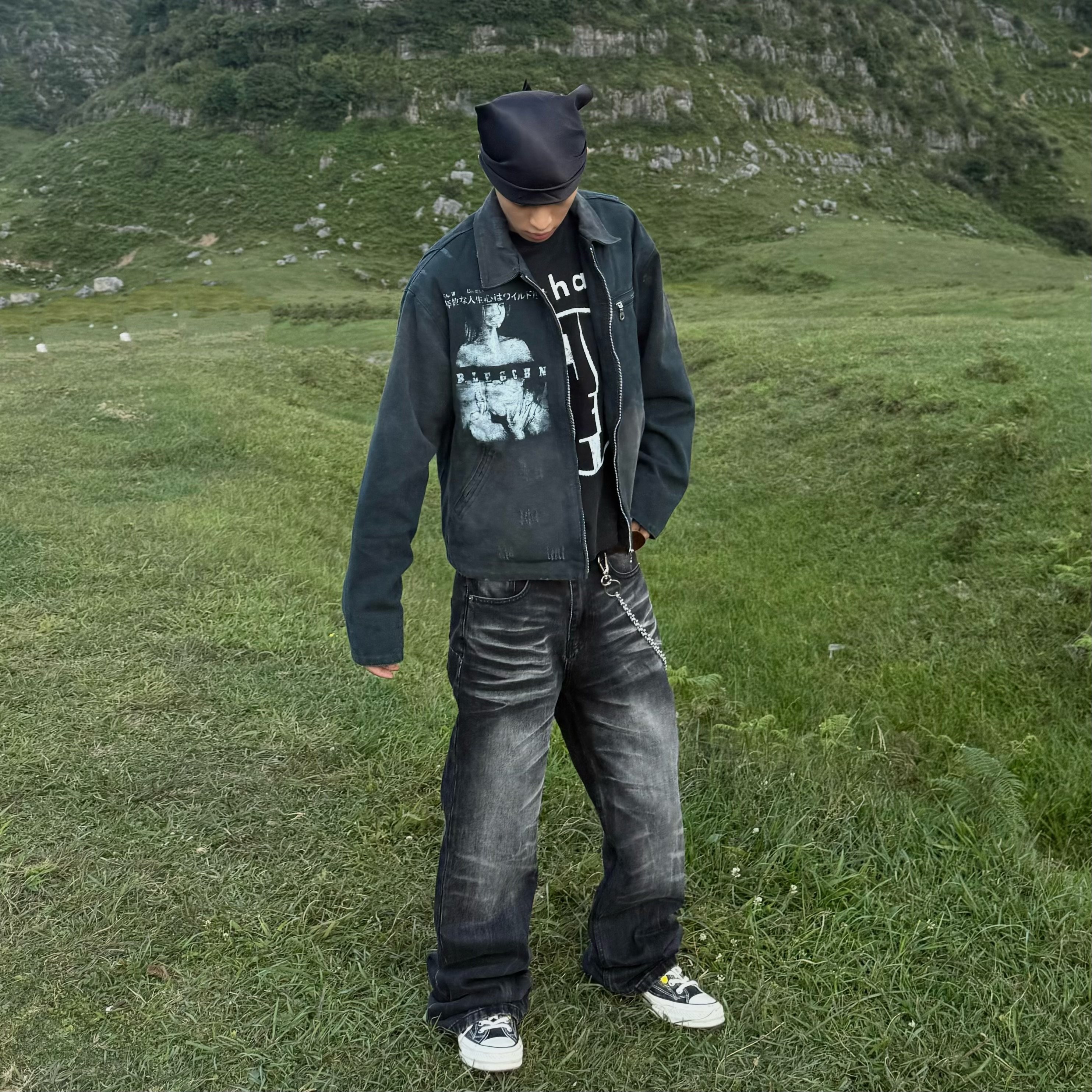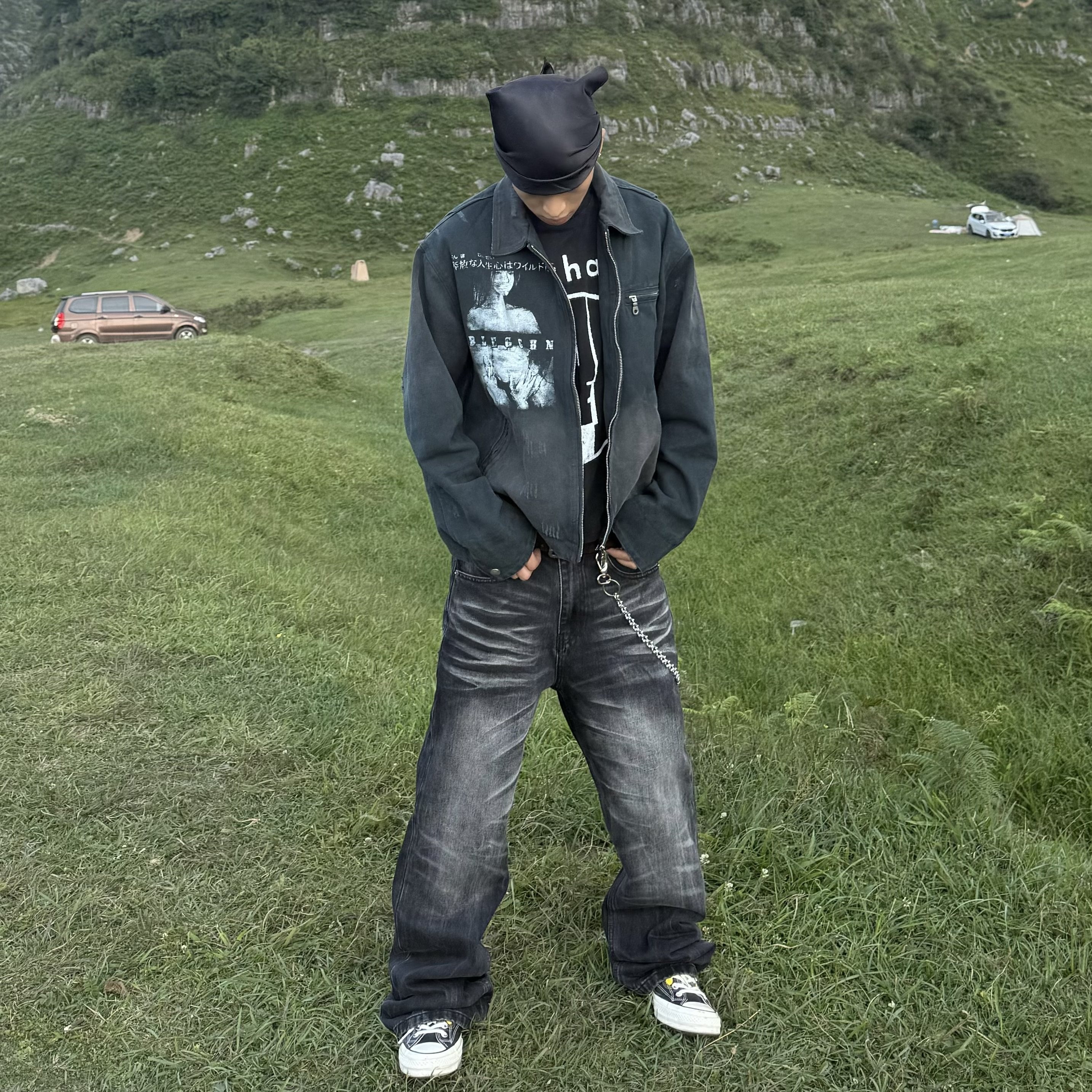 HY711 水洗做旧底特律工装夹克男女美式复古cleanfit短款外套