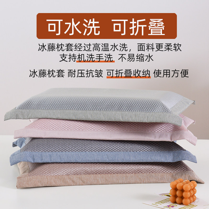 夏凉藤席枕套纯色一对装35*55纯色冰藤48*74长方形枕套可水洗4060