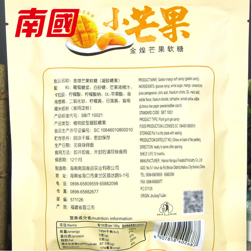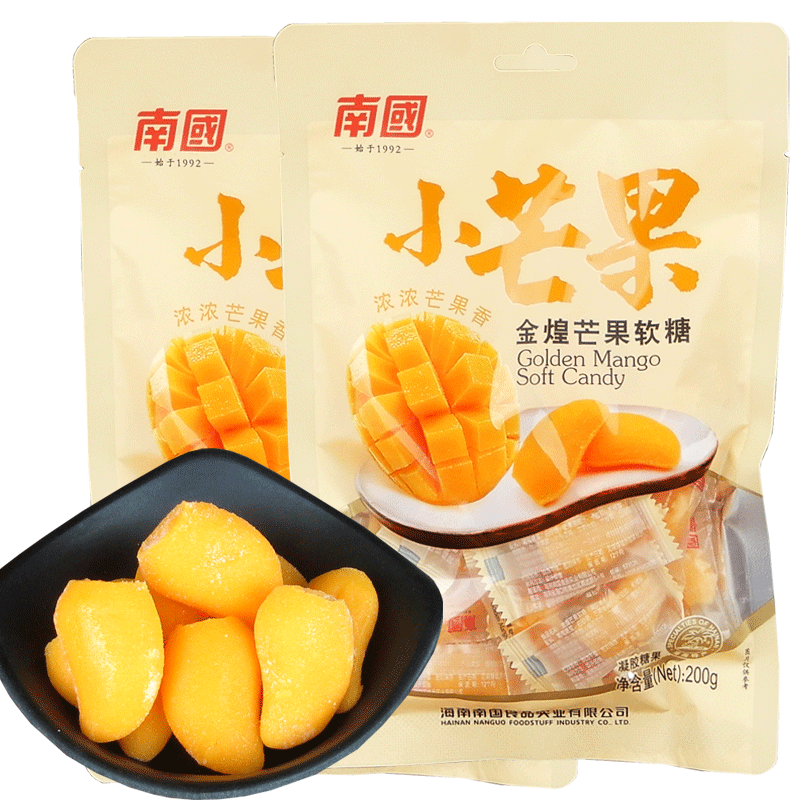 南国食品小芒果200gx2袋 金煌芒果软糖果巴厘菠萝软糖海南特产