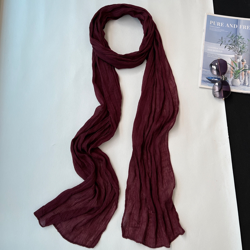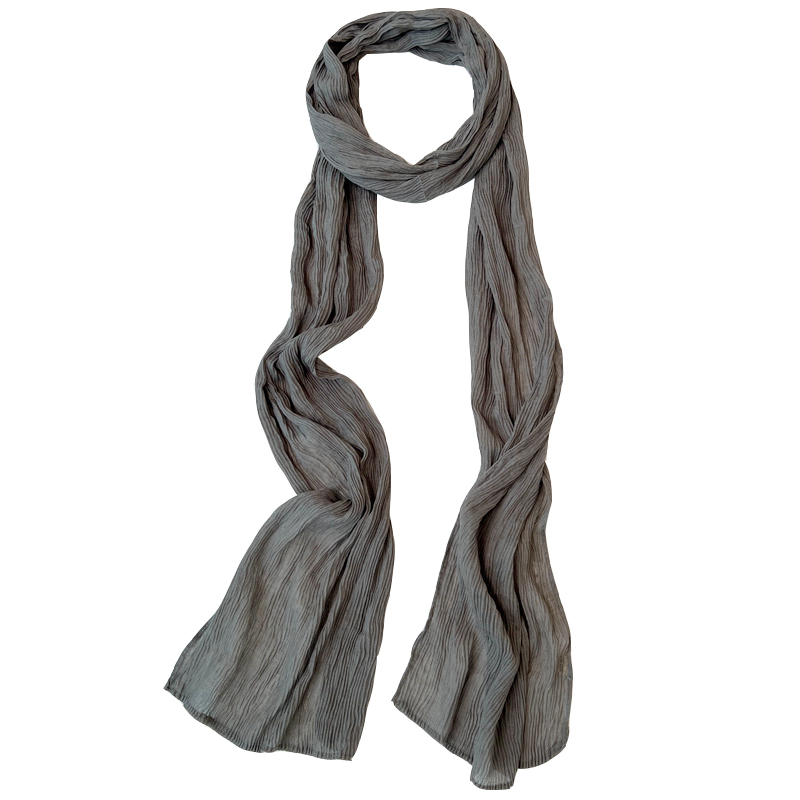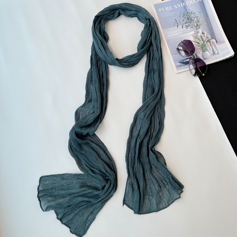 夏季围巾女超长薄款棉麻百搭窄款细长条褶皱装饰护颈椎丝巾浅灰色