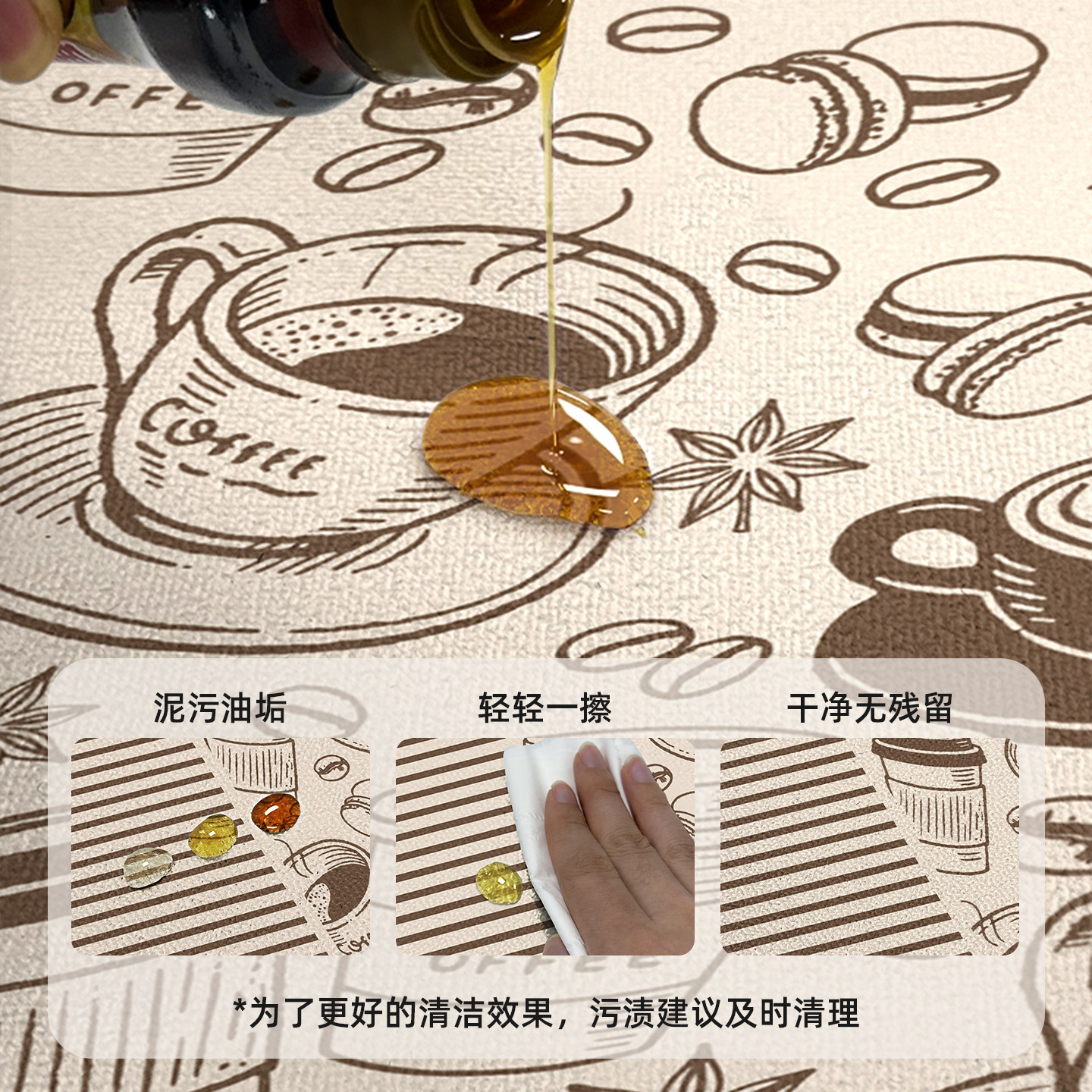 厨房地垫防水防油防滑耐磨脚垫家用长条门垫免洗可擦地毯耐脏垫子