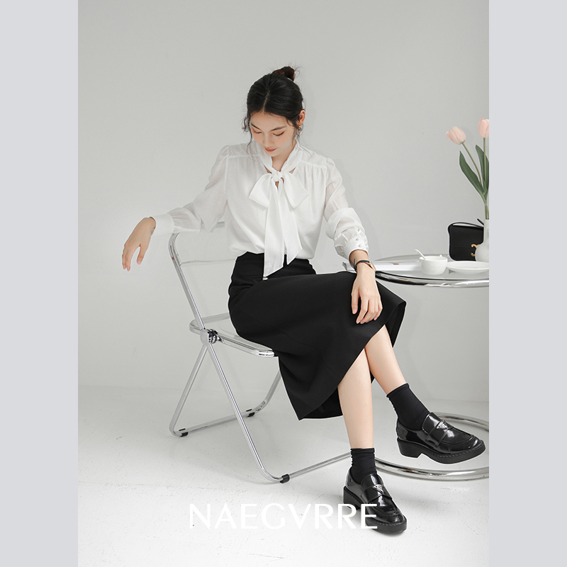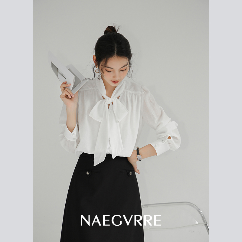 奈格薇儿小个子醋酸衬衫2025秋季新款女正装职业装面试蝴蝶结上衣