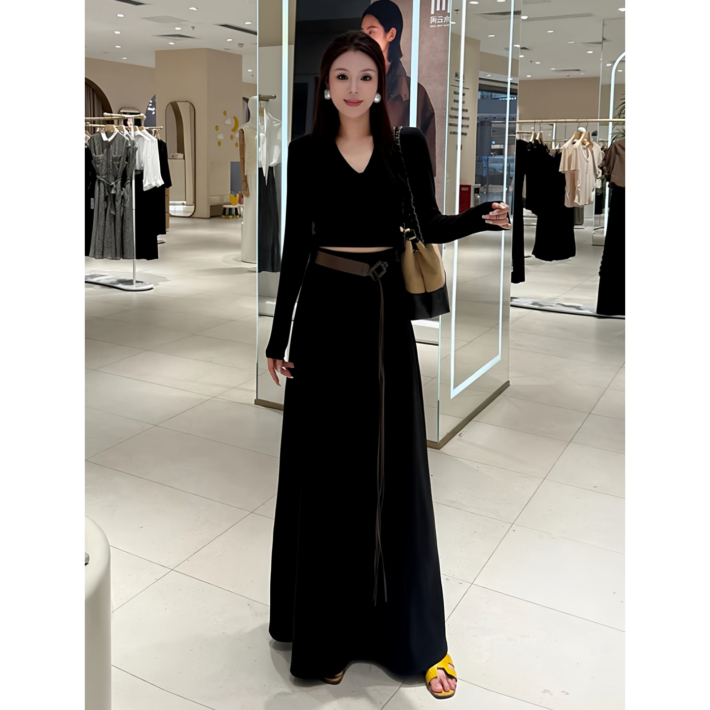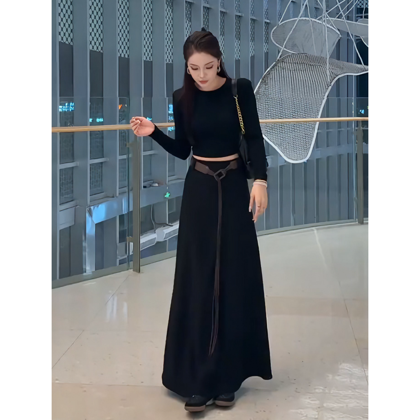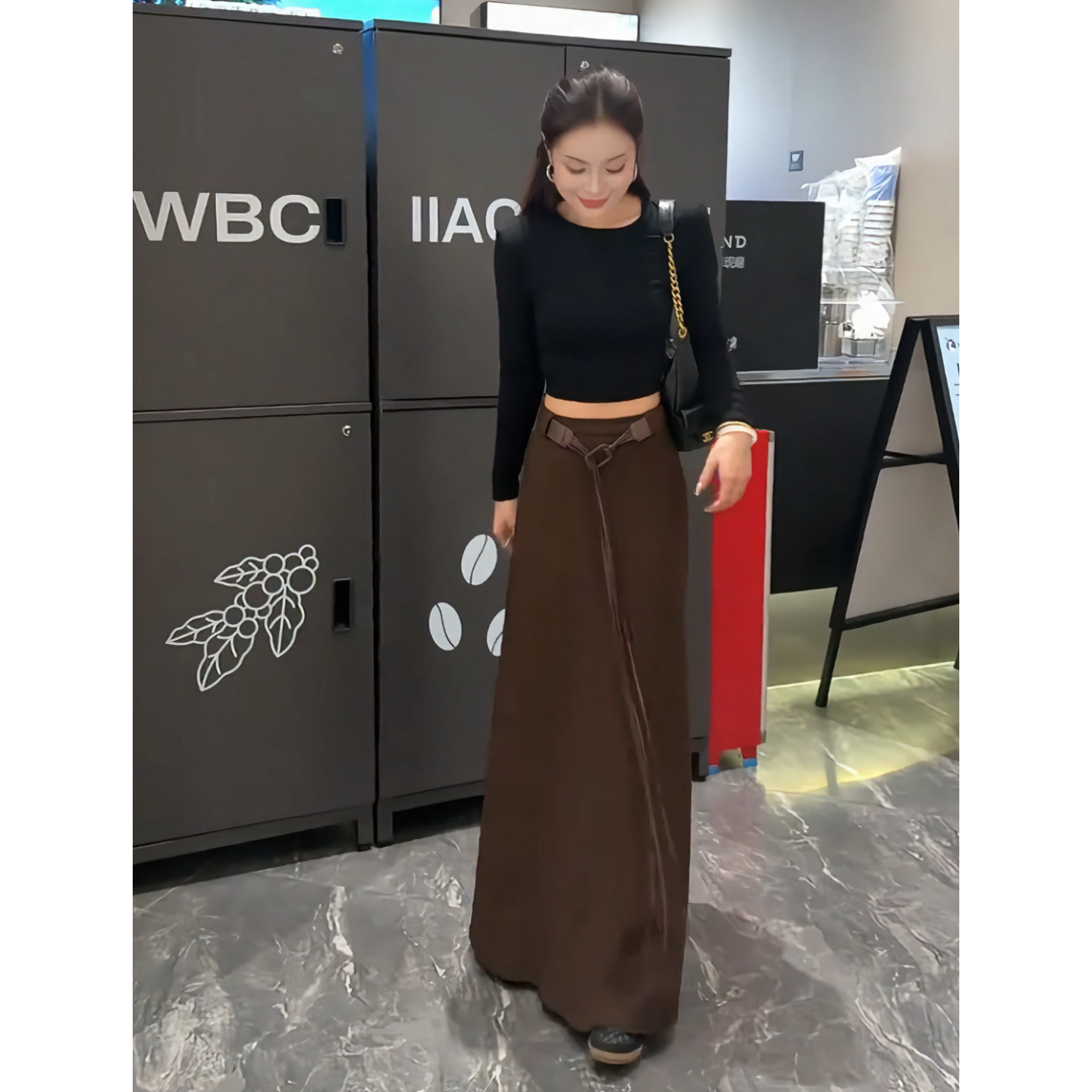 秋季新款气质百搭高腰显瘦A字半身裙女胖妹妹mm复古遮胯显瘦长裙