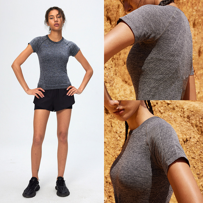 粒子狂热丨运动短袖春夏女一体织高弹裸感瑜伽健身T恤TP084
