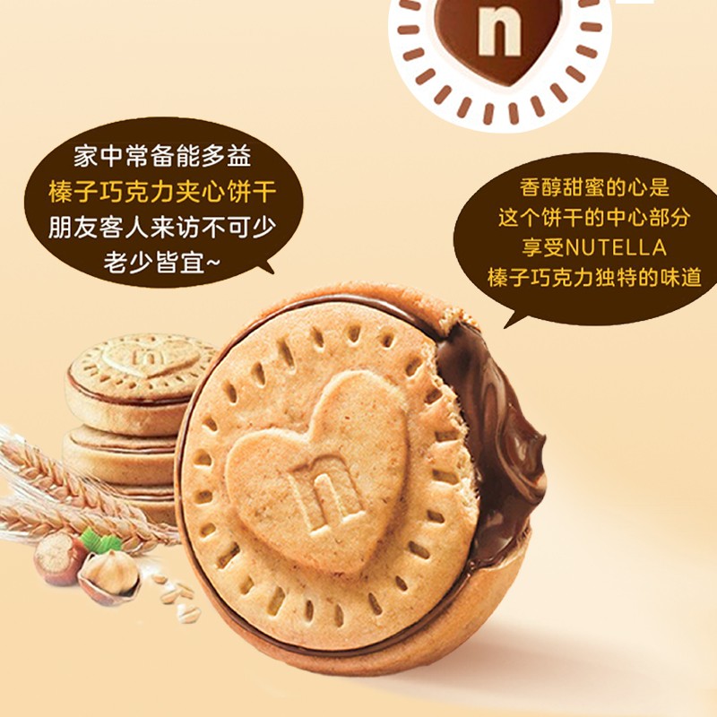 Nutella能多益爱心饼干网红爆款零食推荐榛子可可酱夹心饼干条装