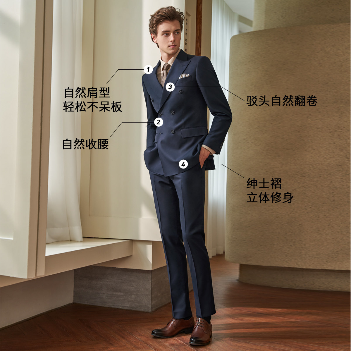 【婚庆礼盒】吉约蒙羊毛双排扣西装套装男新郎结婚礼服正装西服