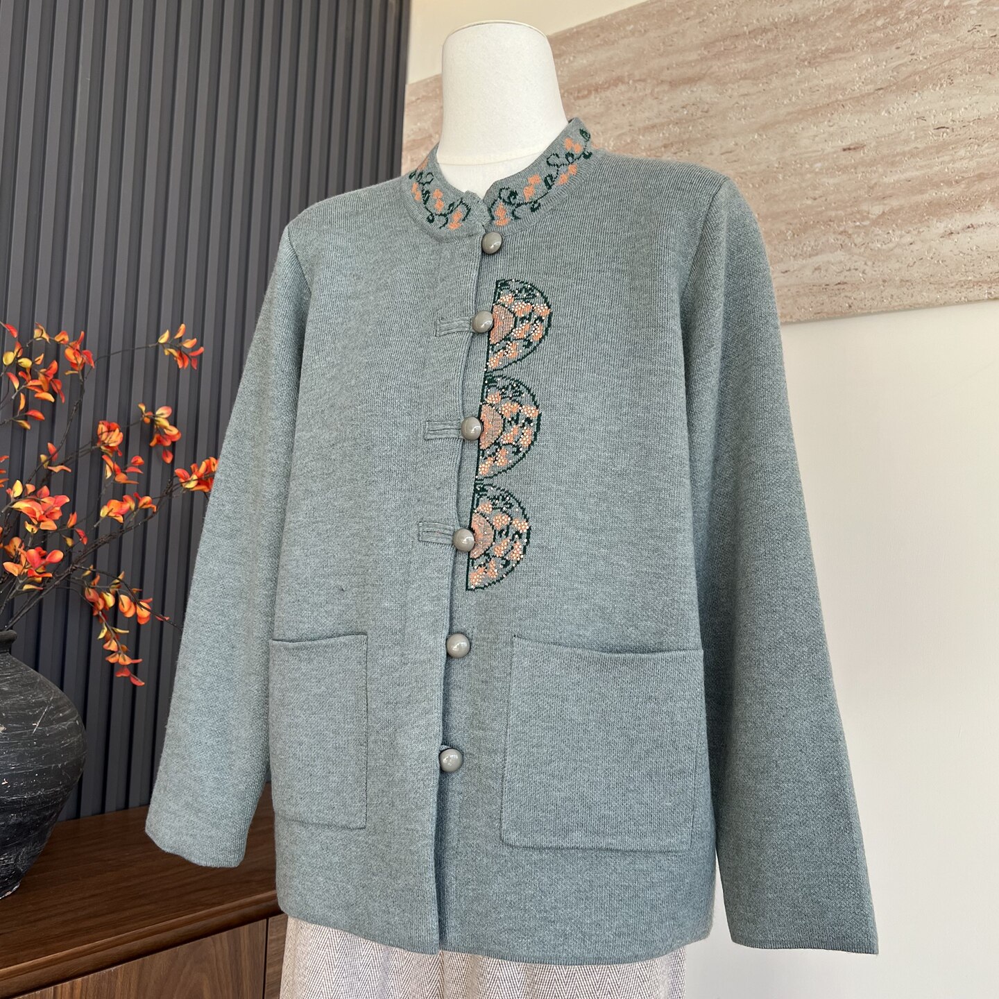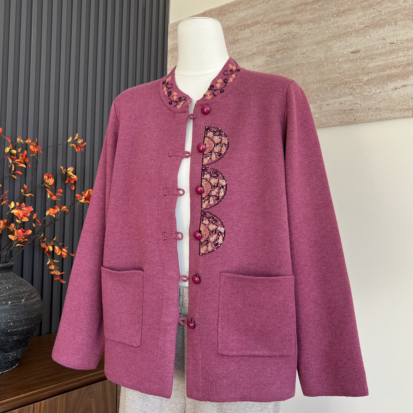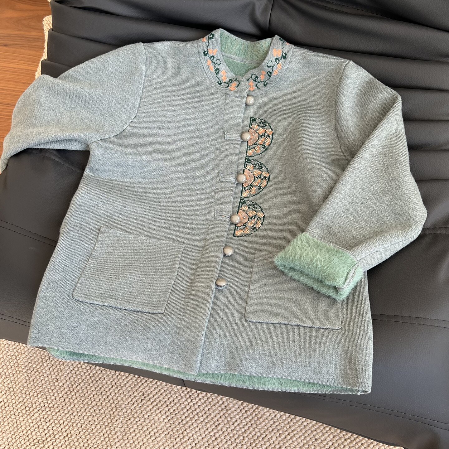 新中式新款中老年女秋冬纽扣立领开衫奶奶款一体绒女加厚保暖外套