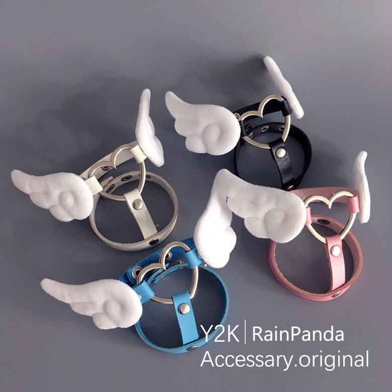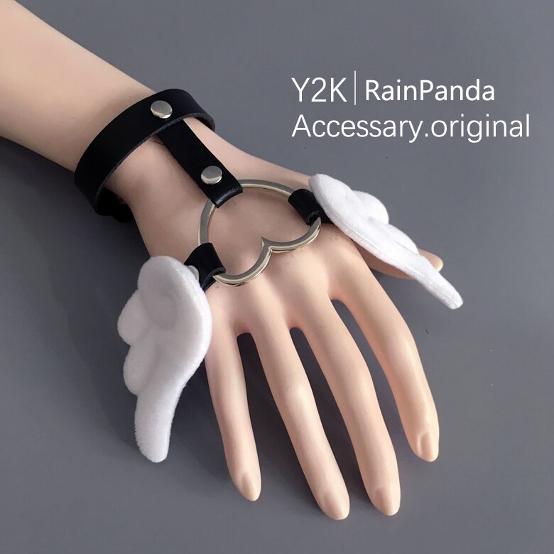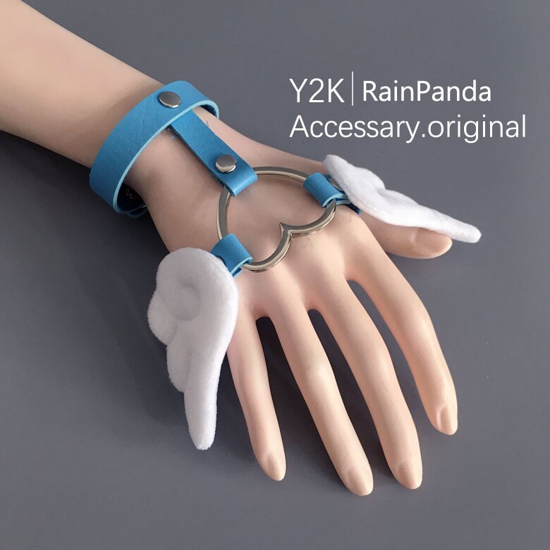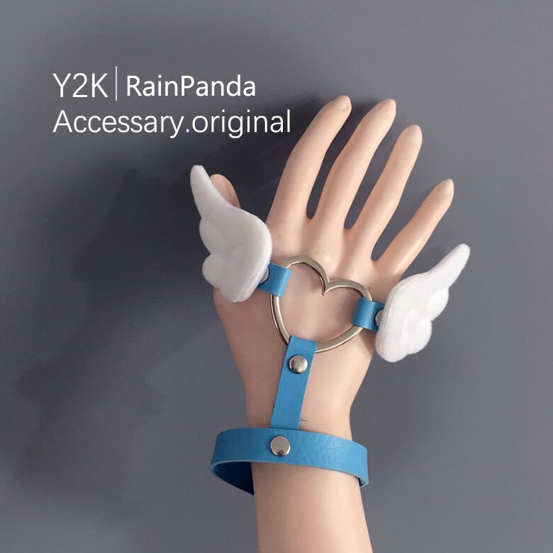雨熊家Y2K亚文化可爱天使翅膀水色手环皮手链手背链手饰