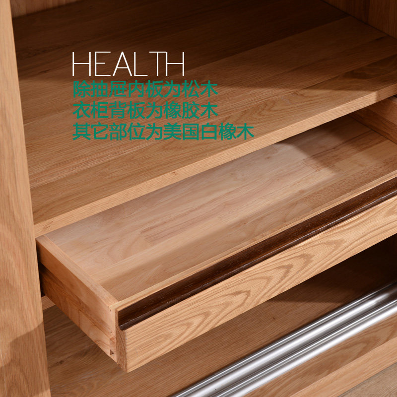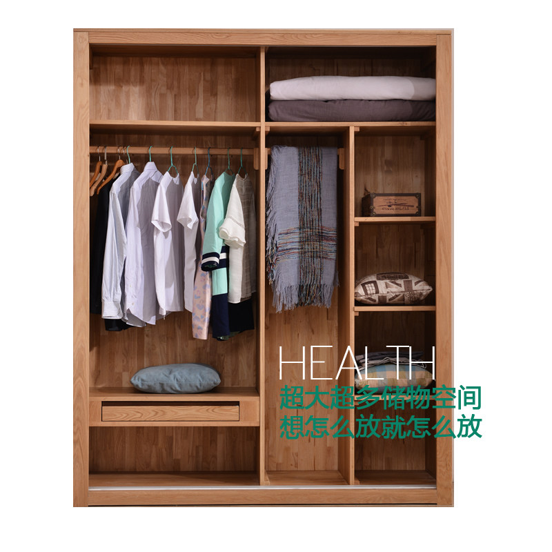 北欧简约纯全实木衣柜推拉门白橡木质整体移门大衣橱定制收纳柜
