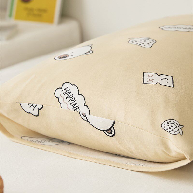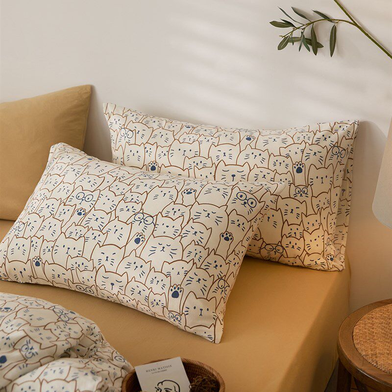 卡通天竺棉枕套1对2只装 全棉48x74cm信封猫咪枕头套纯棉单人用