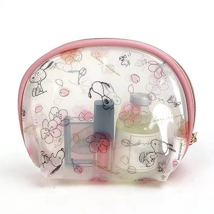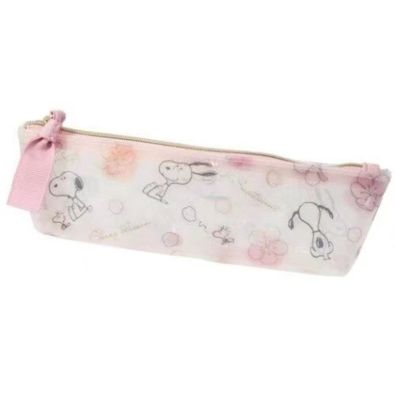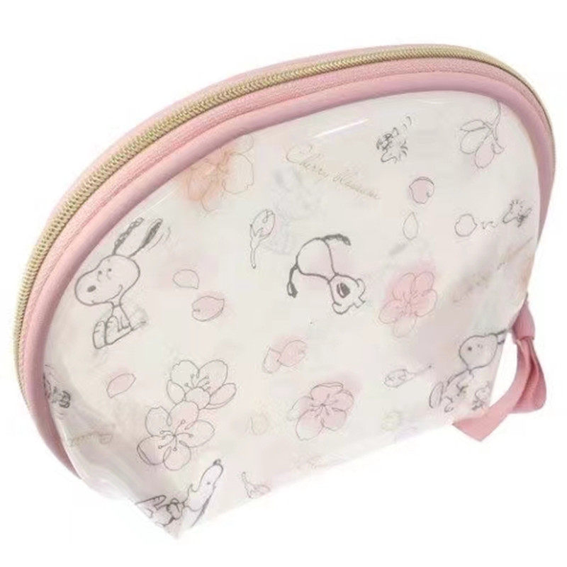 日本史努比樱花系列PVC透明学生文具笔袋大容量化妆包杂物收纳袋