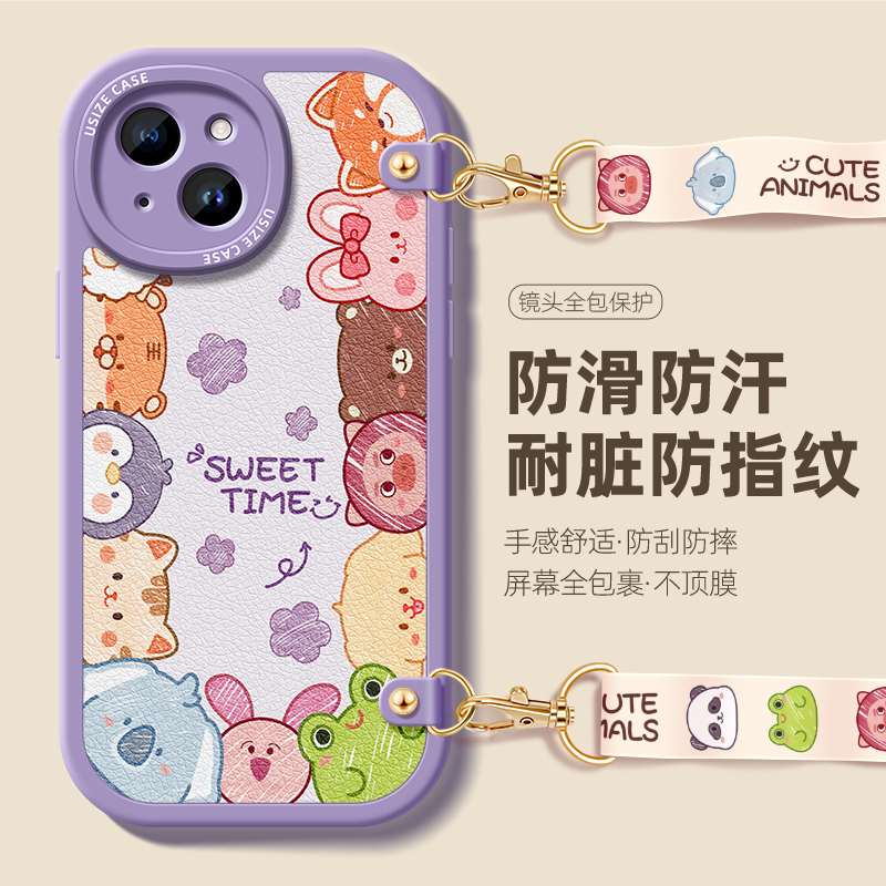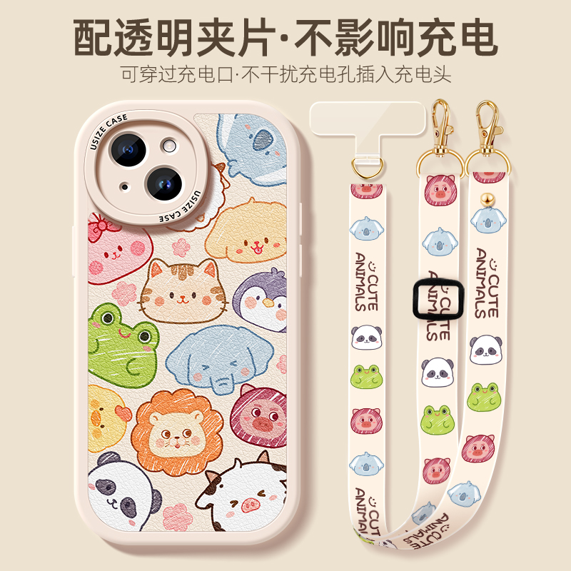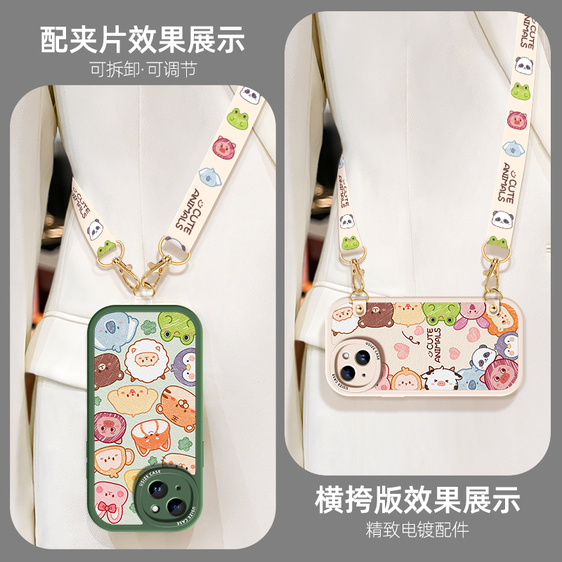 适用苹果14挂绳手机壳iphone15斜挎13可背带跨12pro女款xsmax防摔11可爱8夹片7挂脖带绳6splus硅胶保护套卡通