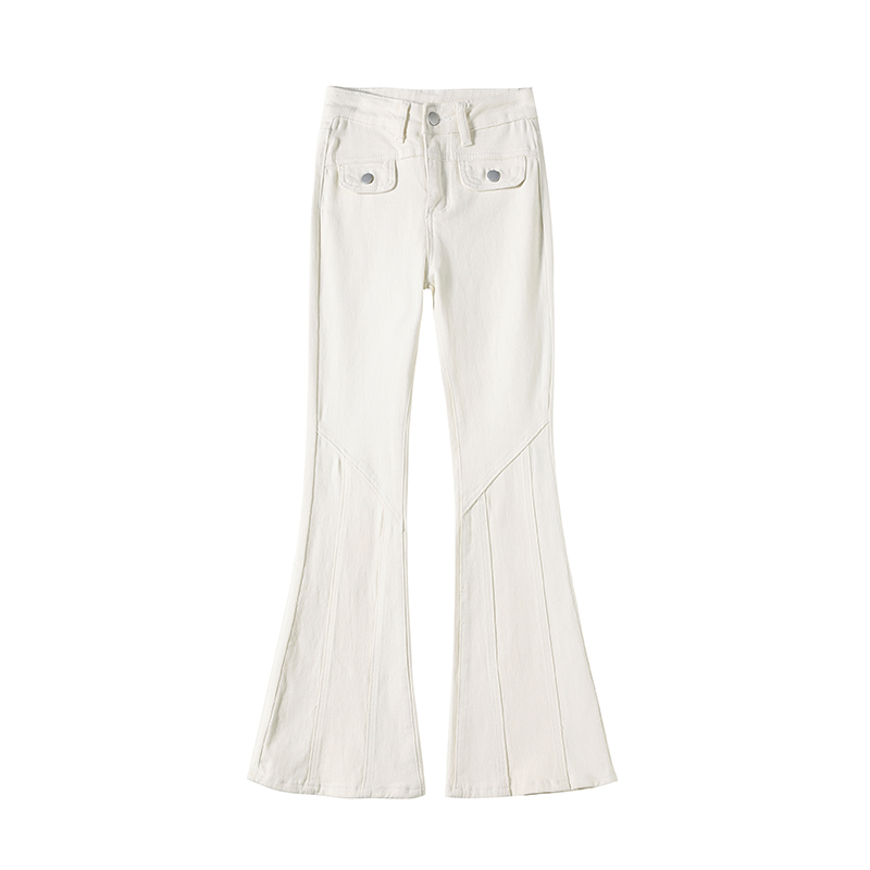 加绒米白色微喇牛仔裤女2024年