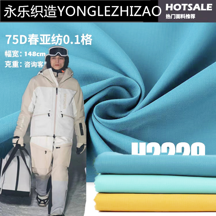 2025年羽绒服布夹克户外269面料0.1cm格防水风衣中厚覆膜冲锋衣