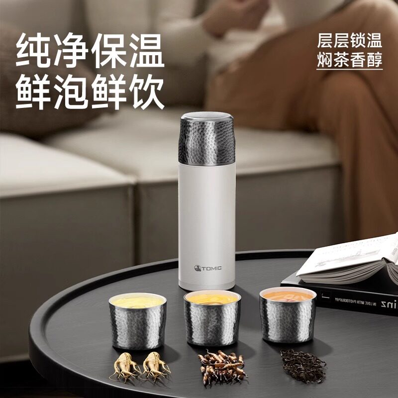 tomic特美刻保温杯钛焖茶杯锤纹水杯女陶瓷内胆茶水分离泡茶杯子