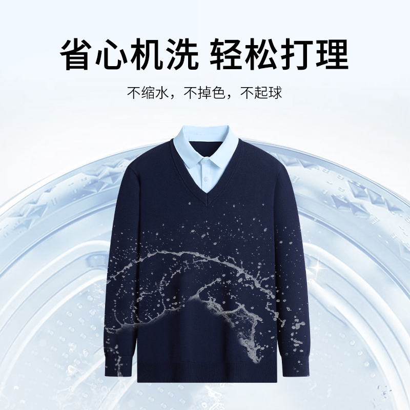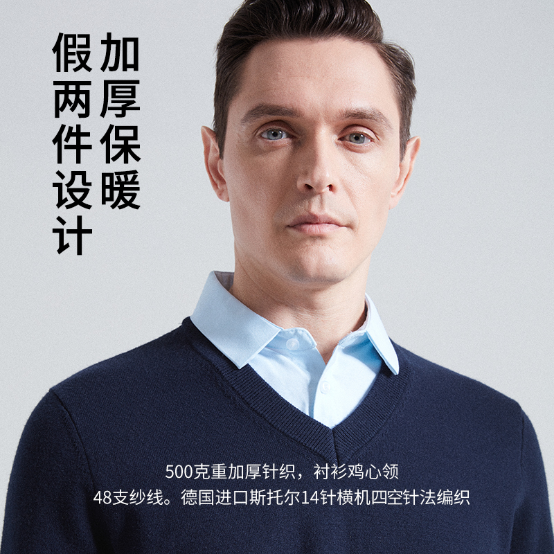 杉杉2025新款假两件加厚保暖男士V领针织衫秋冬高级感商务打底