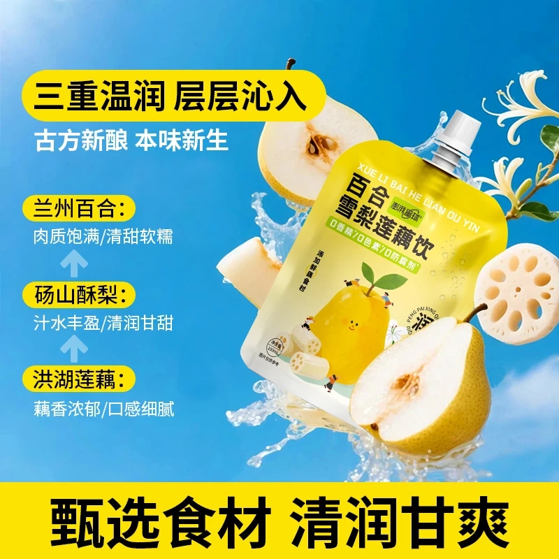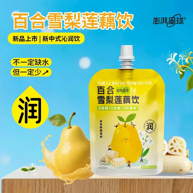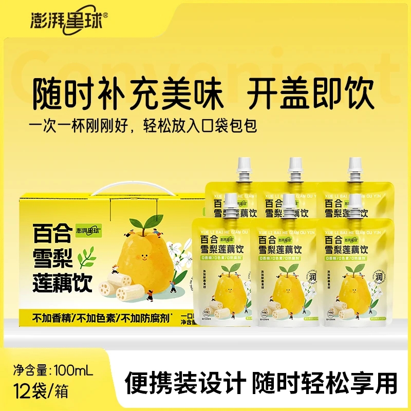 澎湃星球百合雪梨莲藕复合果蔬汁自立袋设计便携装整箱100ml*12袋