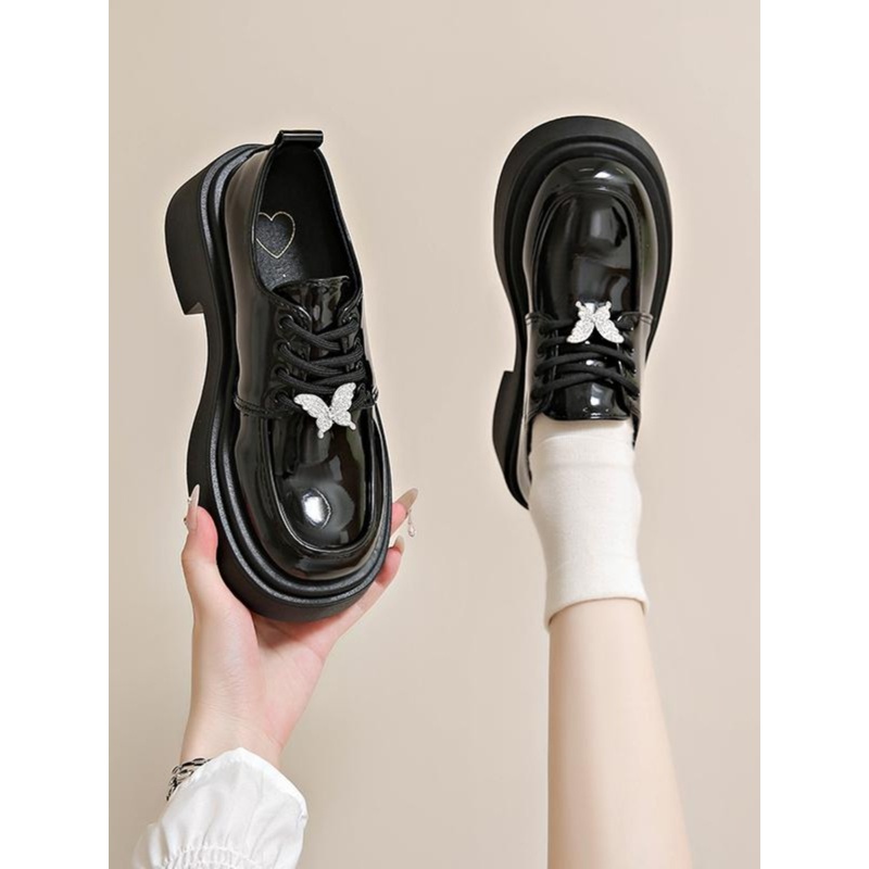 法国MDCW女童公主鞋2025新款中大童女黑色系带学生校园皮鞋