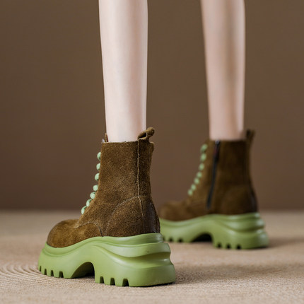 英伦风马丁靴女单靴2025冬季加绒爆款真皮百搭休闲松糕跟厚底短靴