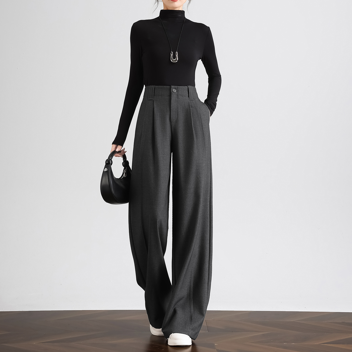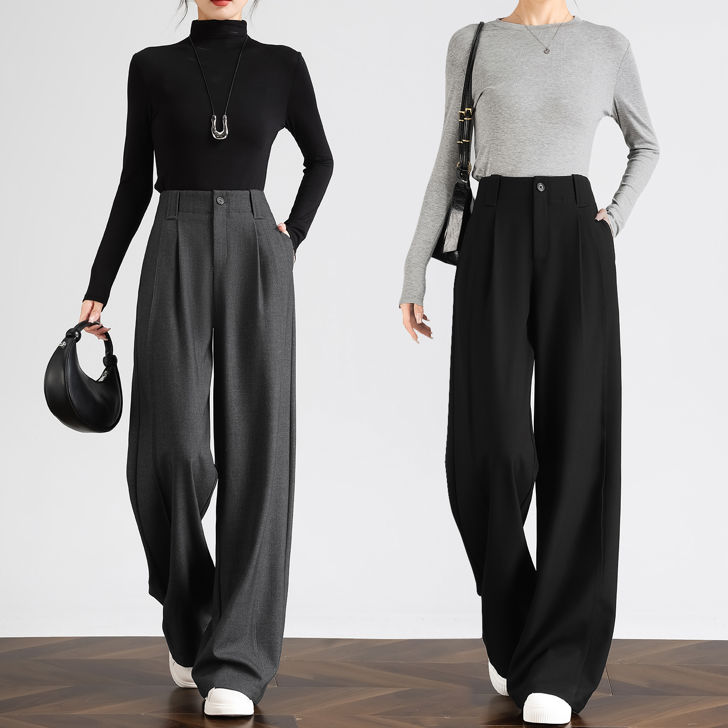 高级感【天丝羊毛】西装裤女直筒垂感裤子高个子加长版灰色阔腿裤