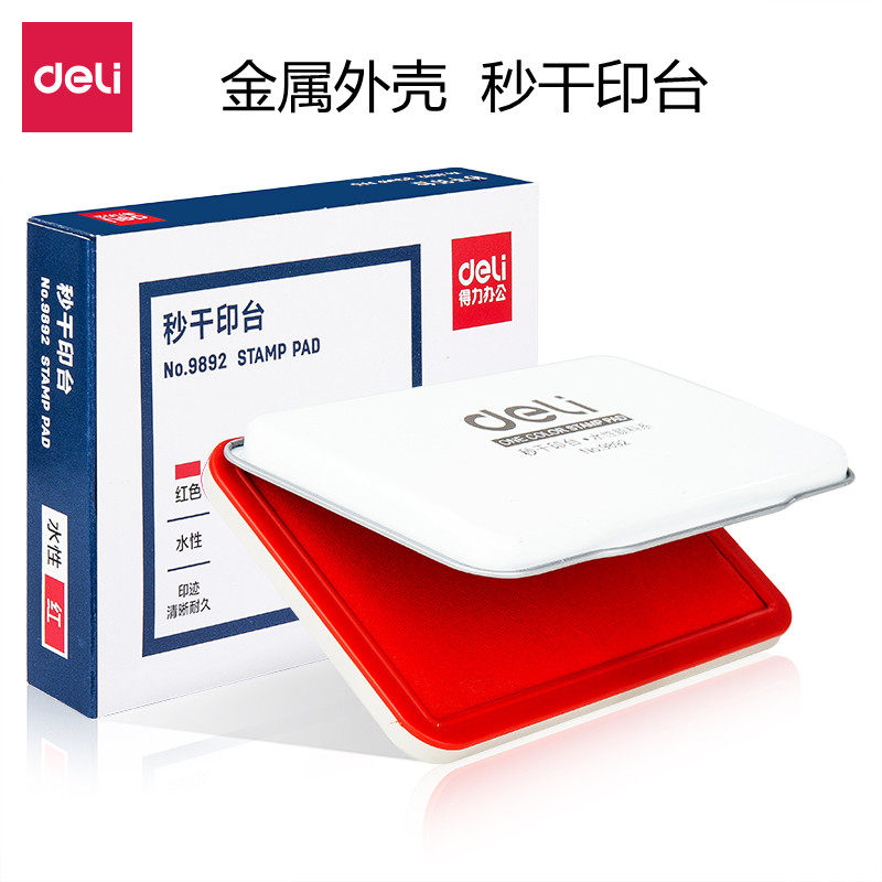 得力印台9892 秒干快干印泥油 方形金属印章油 办公财务用品 红色