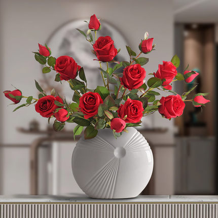 轻奢高仿真花玫瑰花红色客厅花艺室内摆件花束餐桌假花电视柜摆设