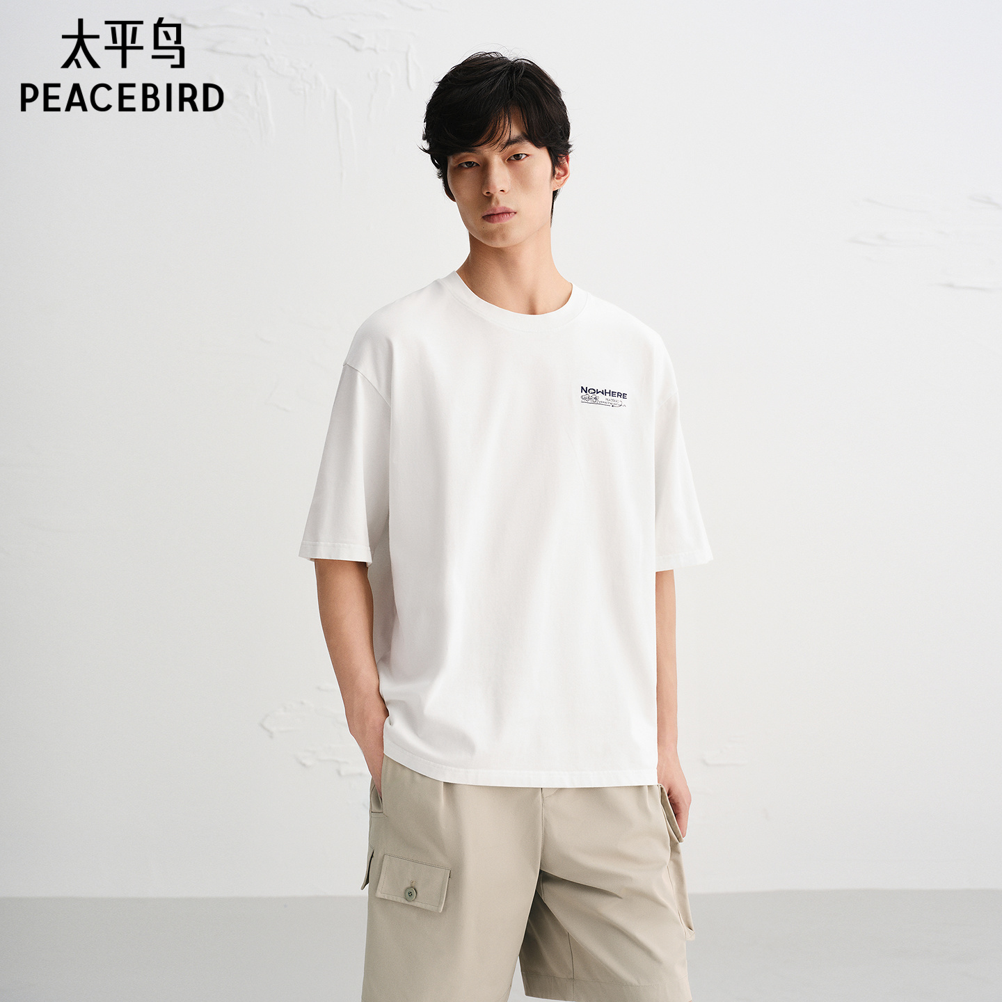 太平鸟男装 NiceT夏季撞色刺绣T恤字母印花