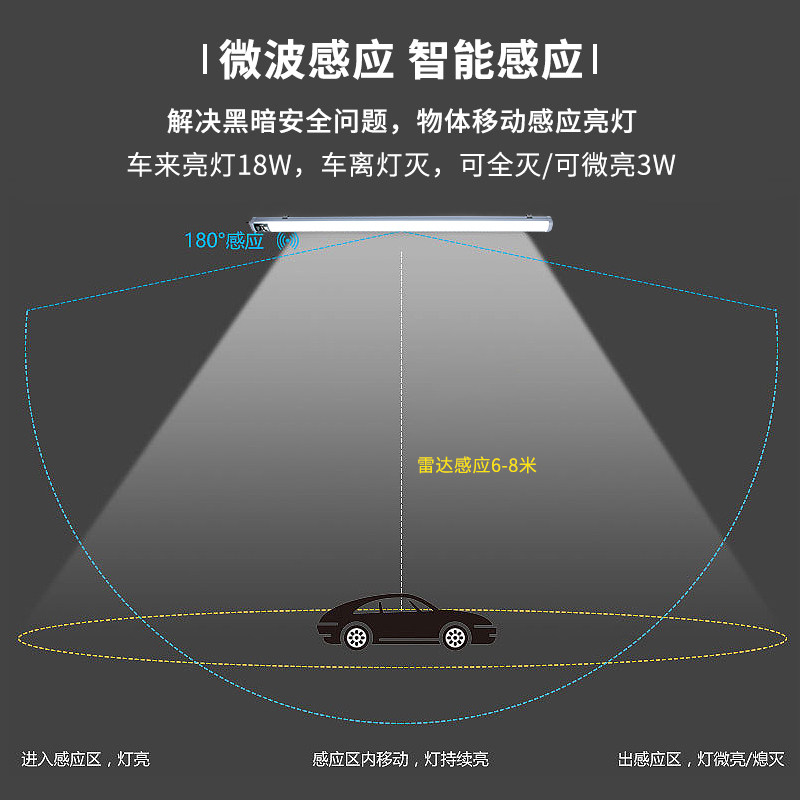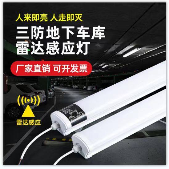 三防led防水灯雷达人体感应地下室超亮一体日光管长条智能办公灯