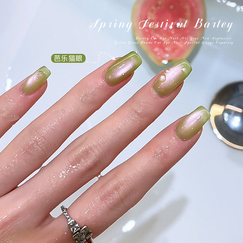 网红爆款美甲芭乐猫眼甲油胶青提绿显白秋冬双光玻璃珠猫眼光疗胶