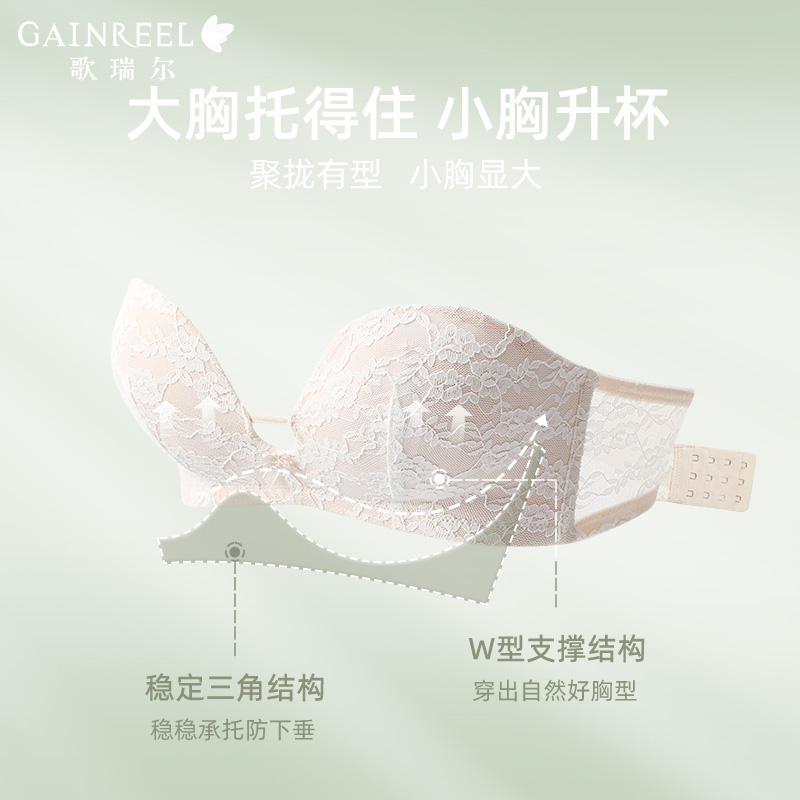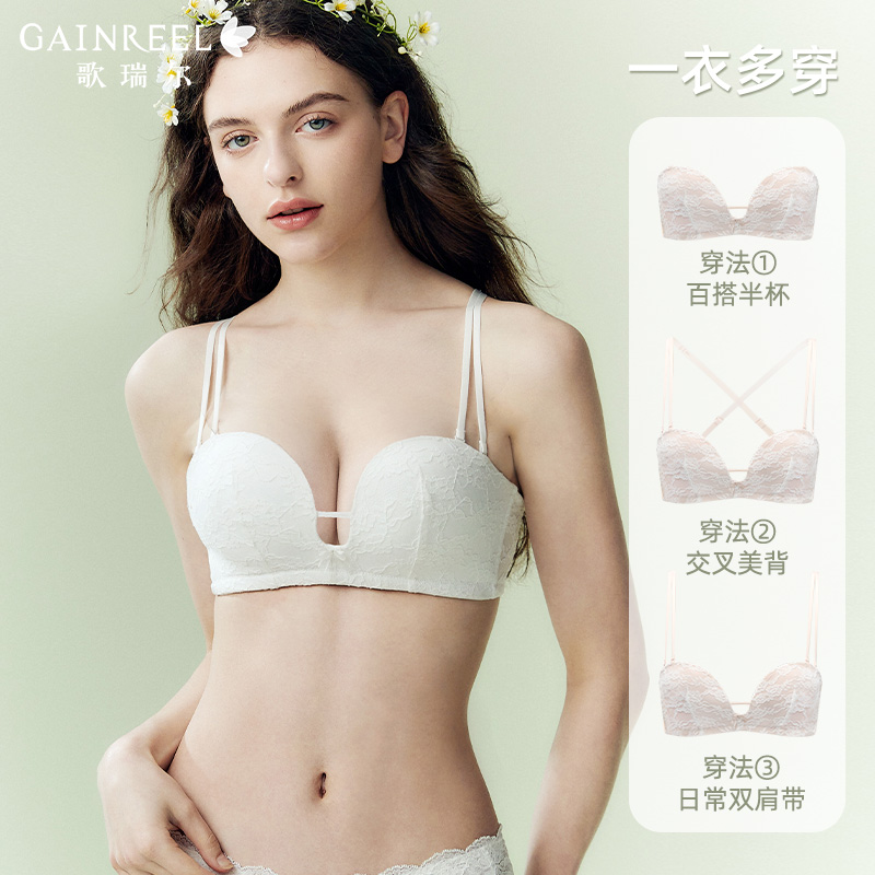【裸感小半杯】歌瑞尔无肩带内衣女聚拢小胸显大蕾丝文胸罩套装
