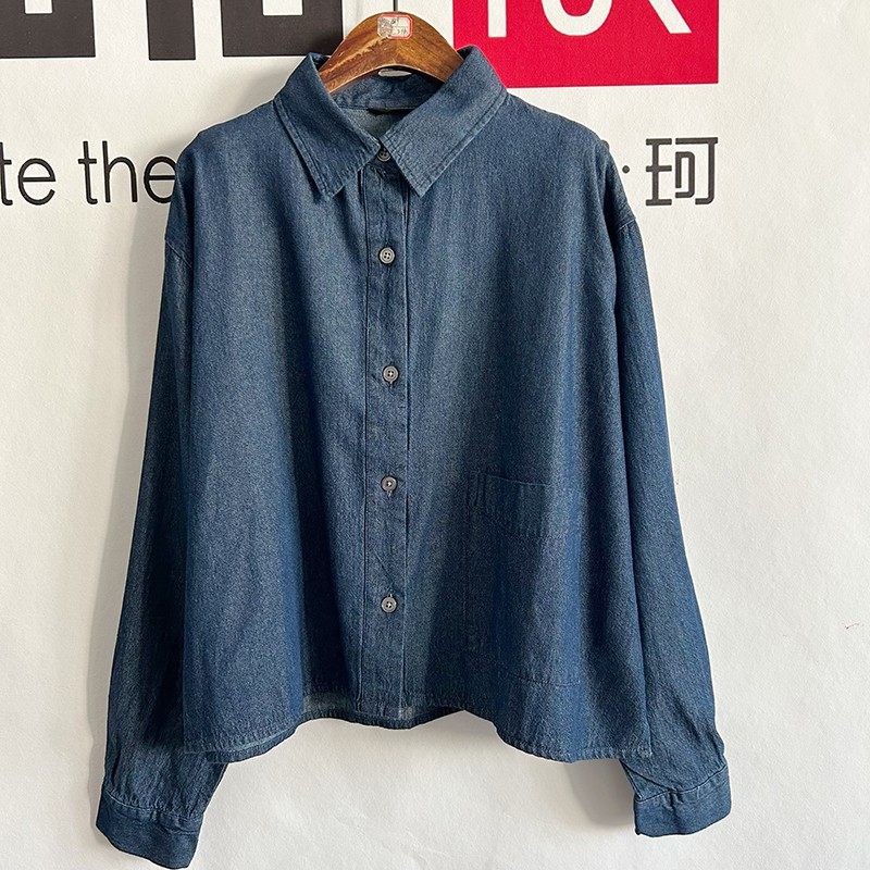 日单女士春夏秋纯棉100%棉翻领牛仔衬衣宽松水洗显瘦短款外套水洗