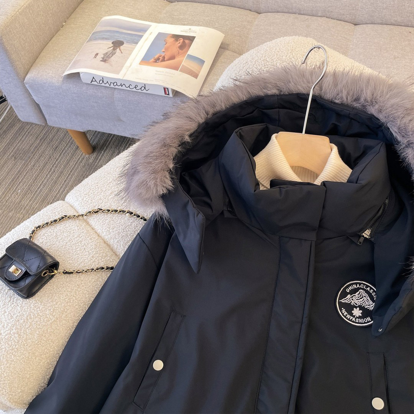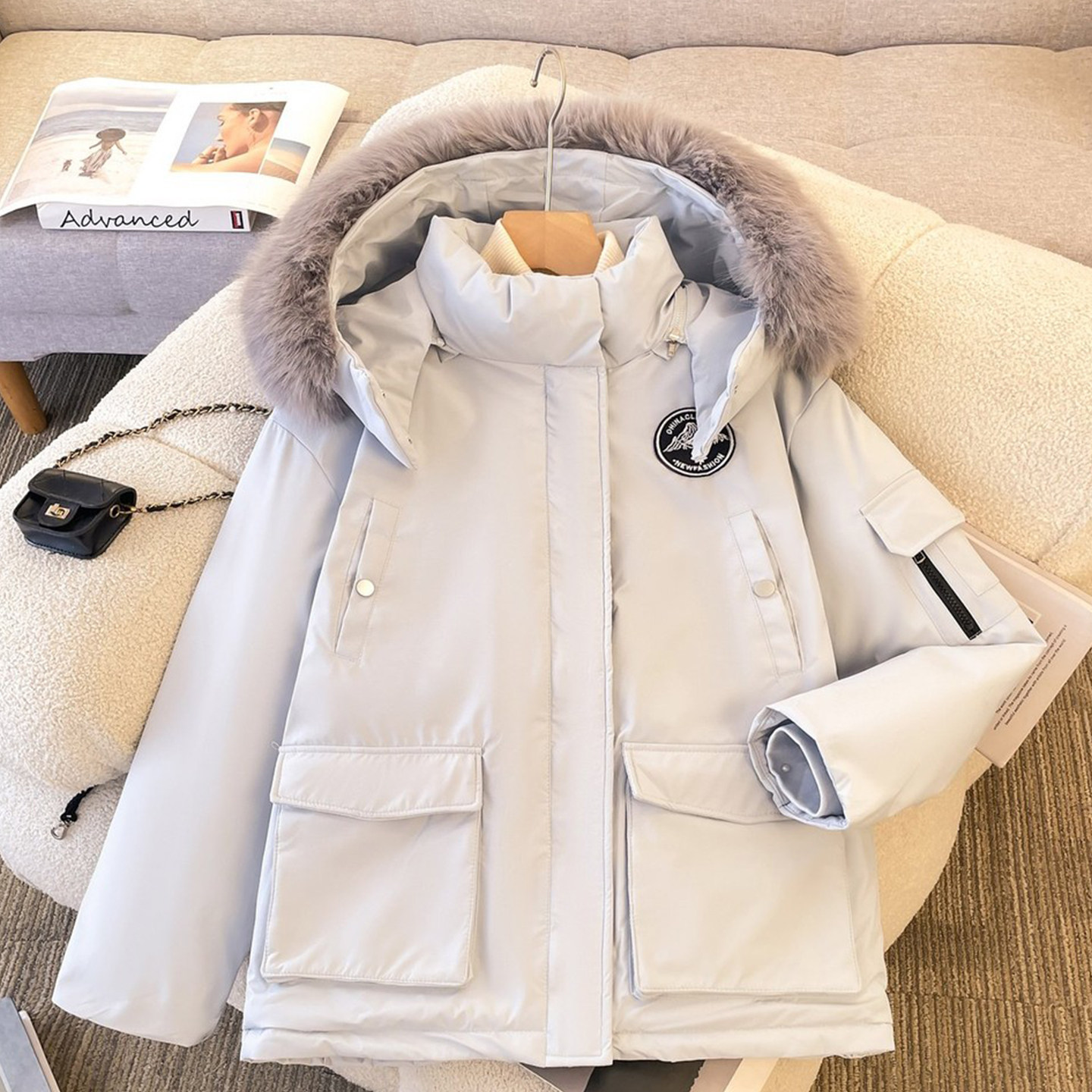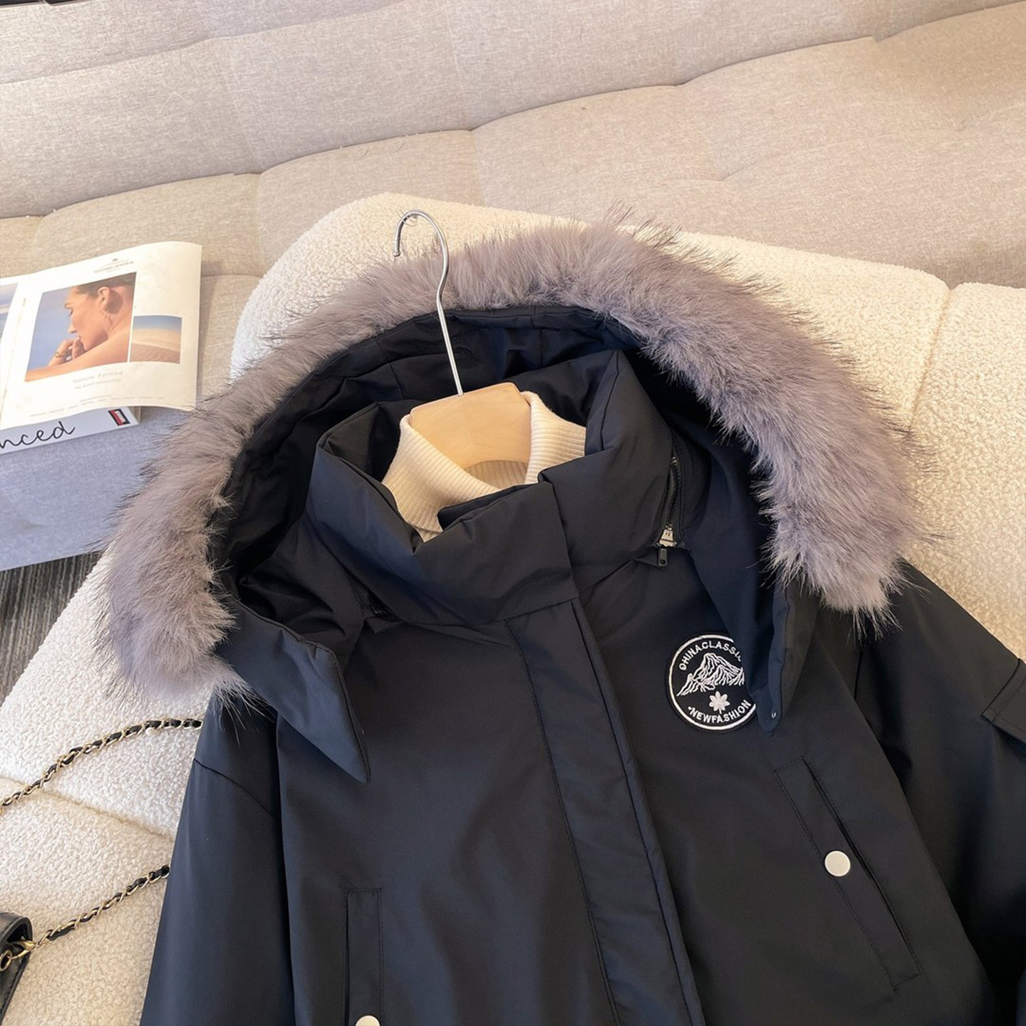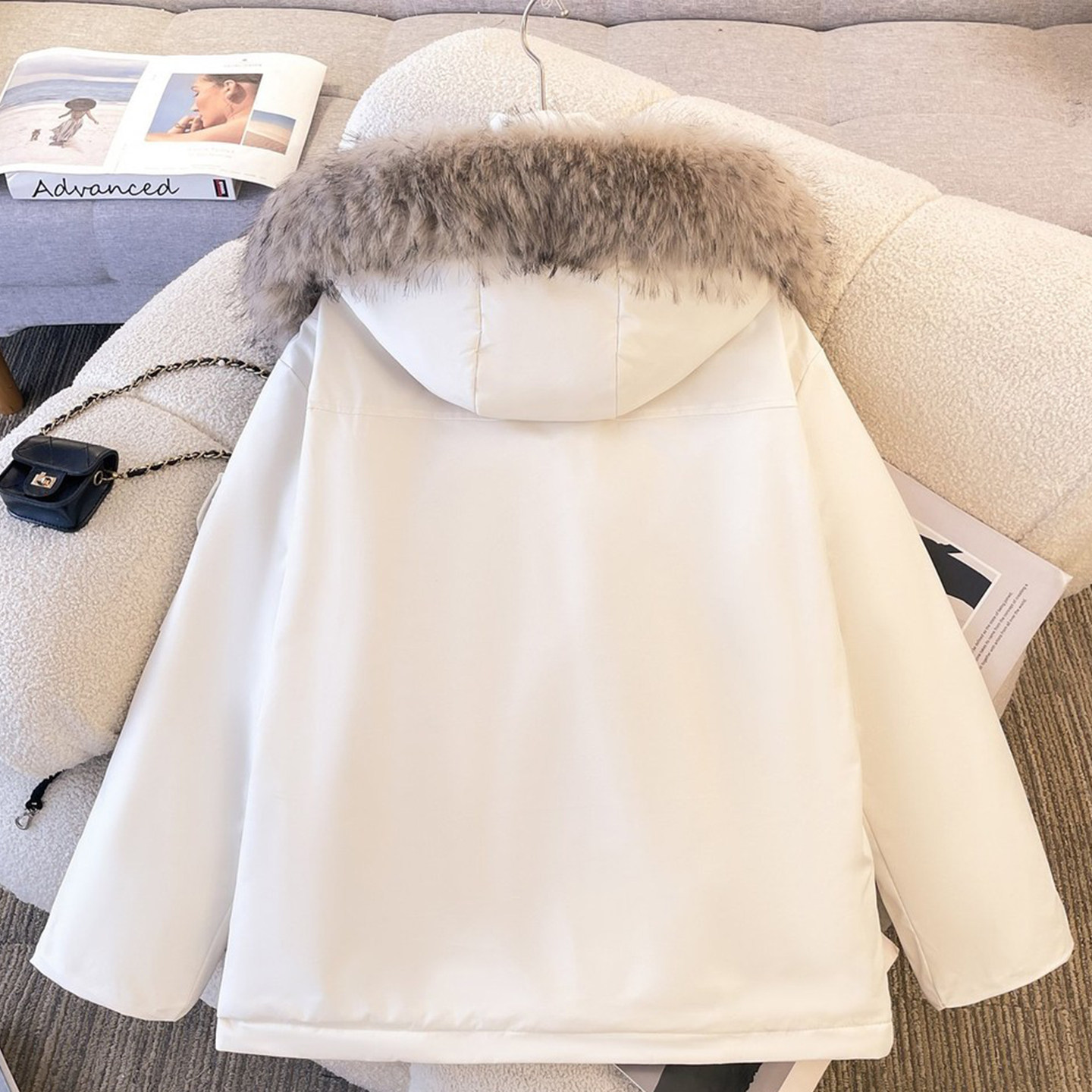 胖mm大码女装黑色毛领棉服女冬季加厚连帽美式工装风保暖夹棉外套