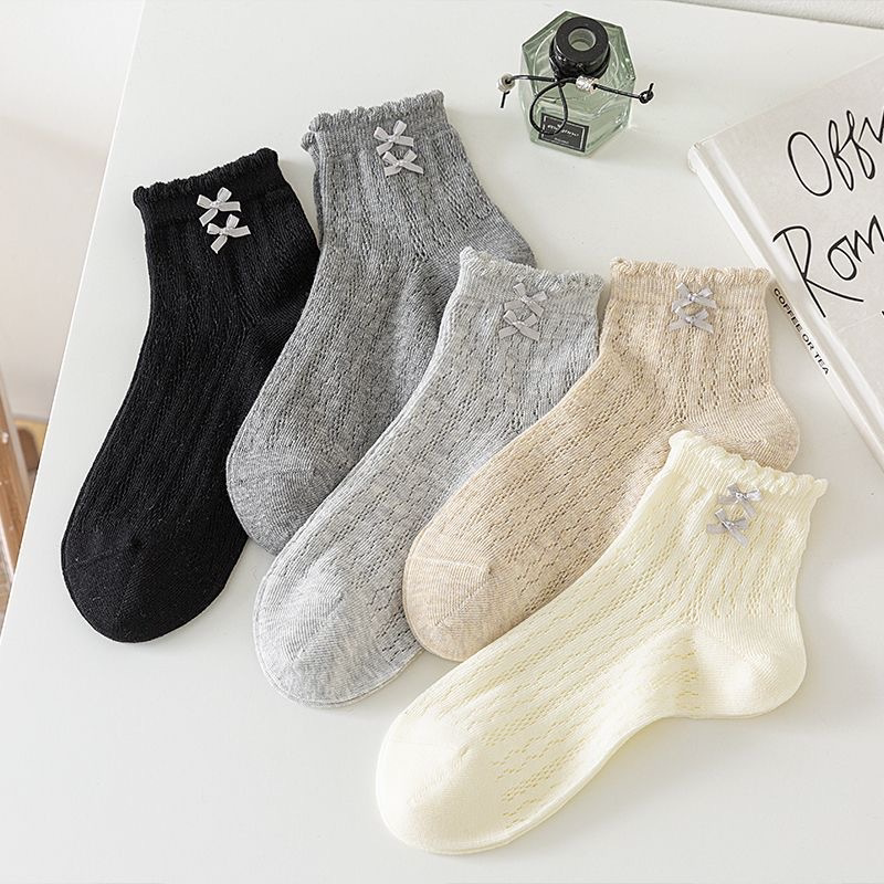 女士短袜网眼编织蝴蝶结装饰多色可选日常穿搭搭配鞋子舒适短筒袜