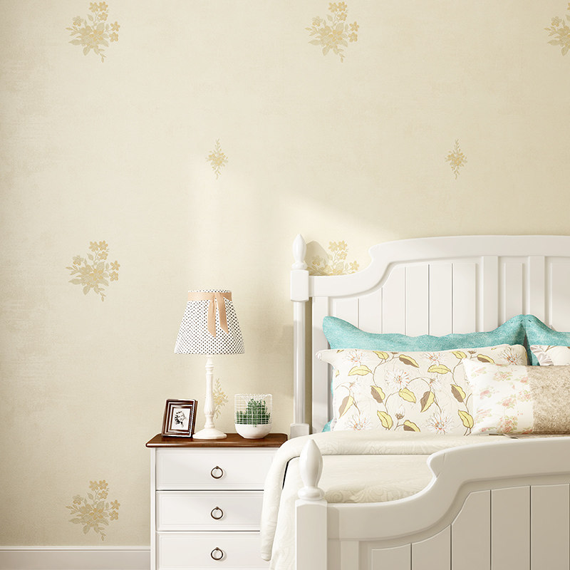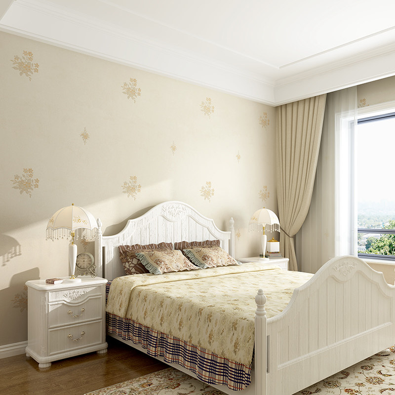 韩式小清新无缝墙布田园家用卧室刺绣客厅壁纸现代简约提花壁布
