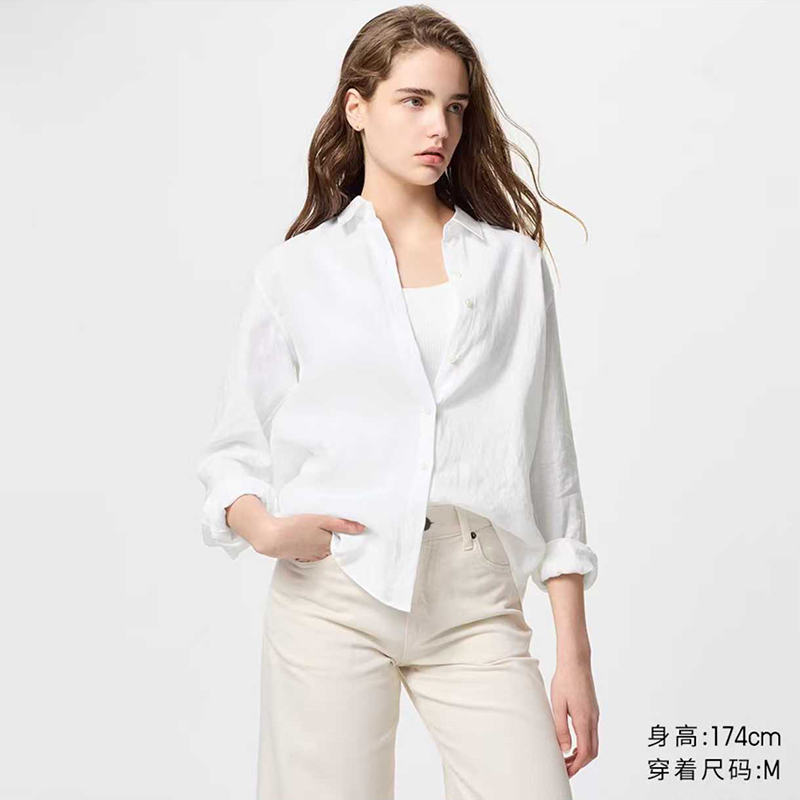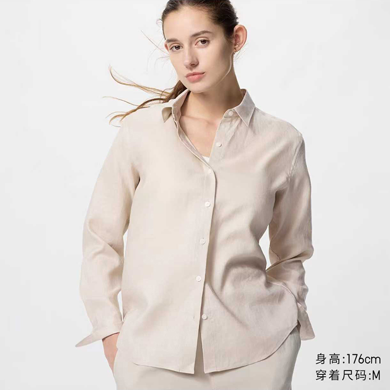 475647 春季新款12色女装法国麻衬衫长袖衬衣空调衫薄外套纯色