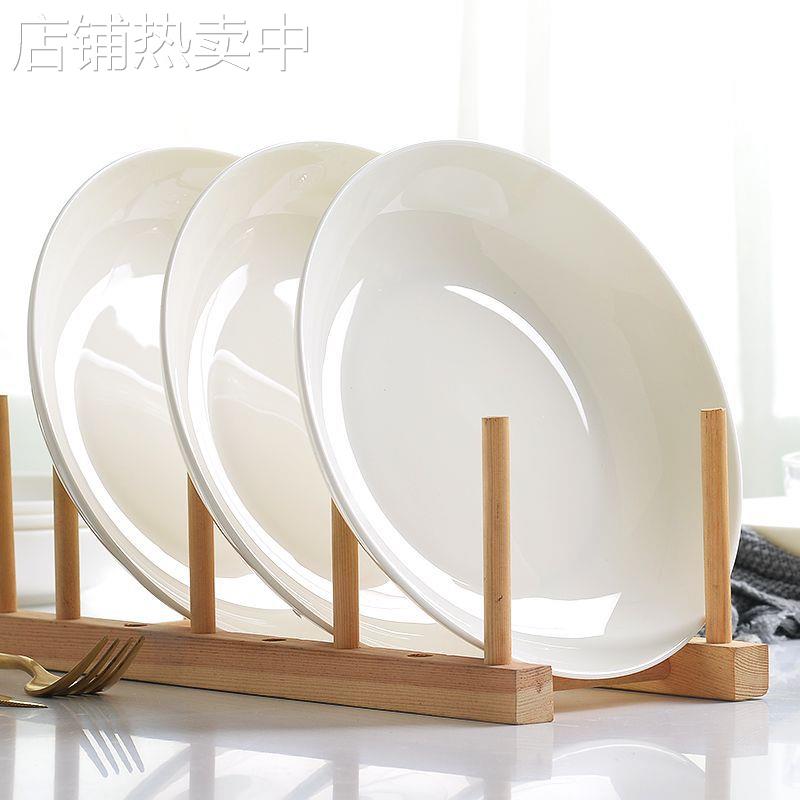 纯白色唐山骨瓷盘子菜盘家用陶瓷碟子圆形白瓷盘饭盘深盘餐强之羽