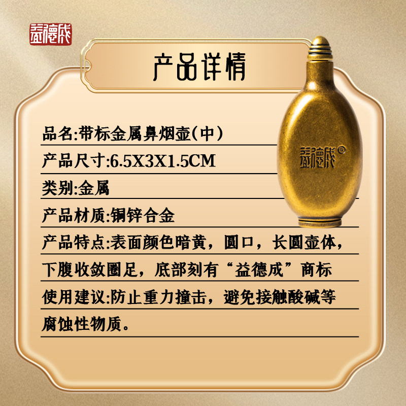 益德成鼻烟壶金属鼻烟瓶壶手工国风创意高端礼品非遗商务礼品档药