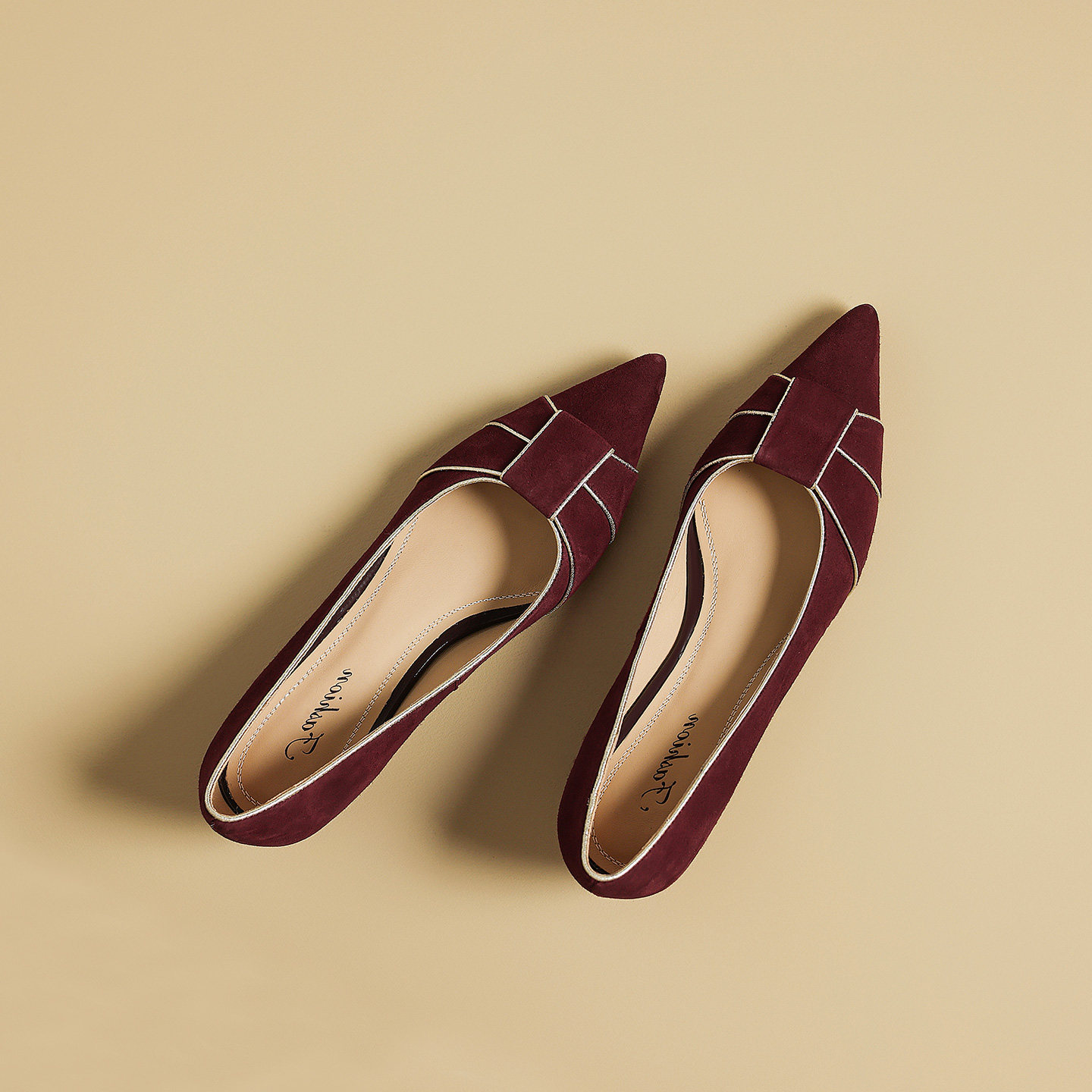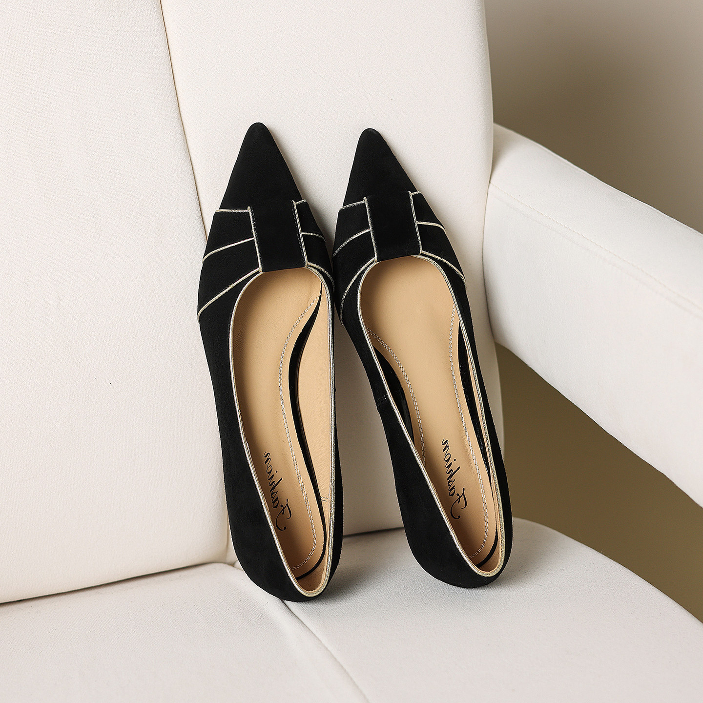 拼接蝴蝶结扣设计尖头低跟单鞋女