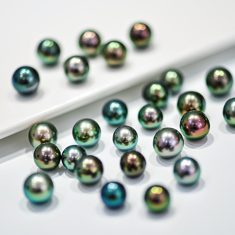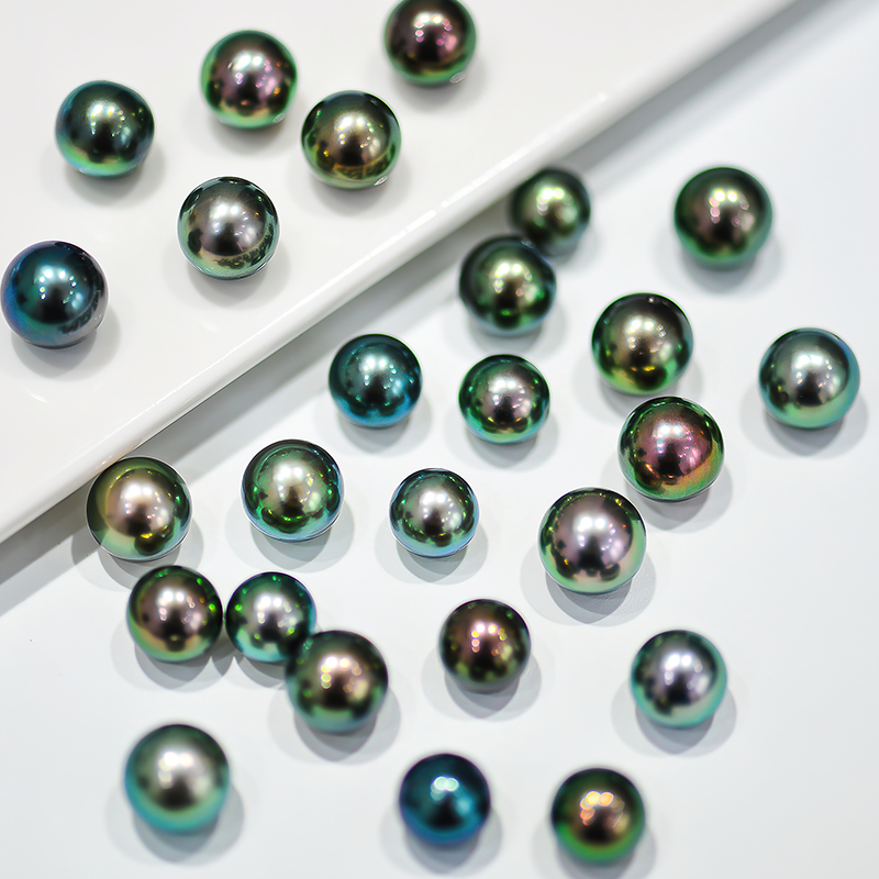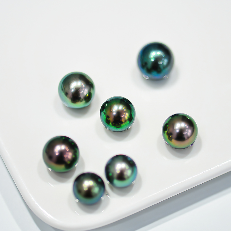 素匠珠宝大溪地黑珍珠孔雀绿炫彩镜面强光海水珍珠裸珠定制DIY