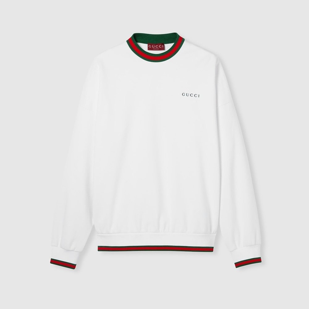 自营欧洲直邮Gucci/古驰 男士白色珠地棉logo标识刺绣织带滚边圆