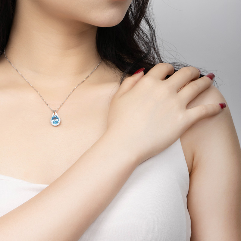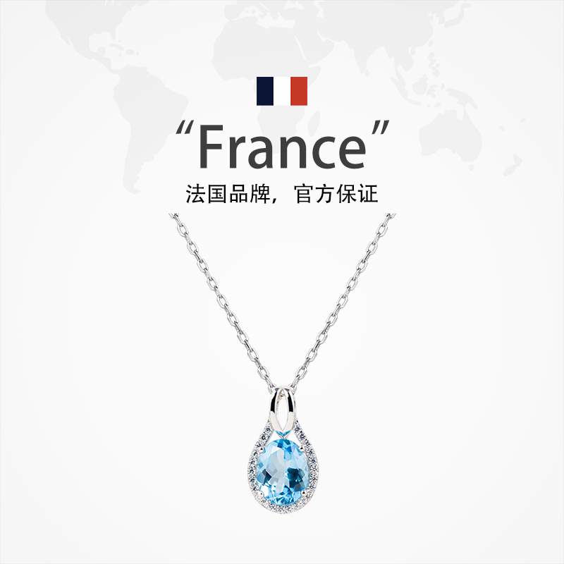 【自营】leqiyuan瑞士蓝天然托帕石项链女水滴吊坠轻奢小众锁骨链