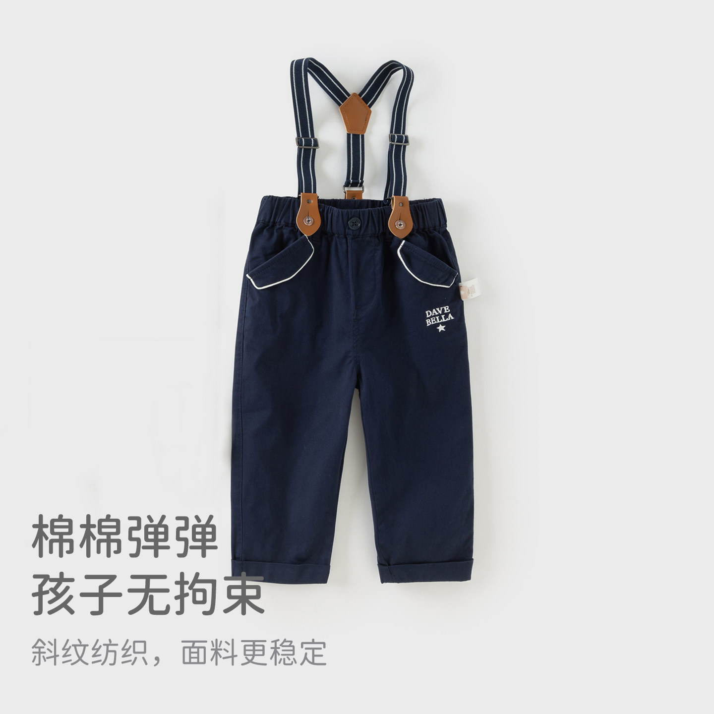 戴维贝拉儿童长裤套装2025秋装新男童绅士风格子衬衫背带裤两件套