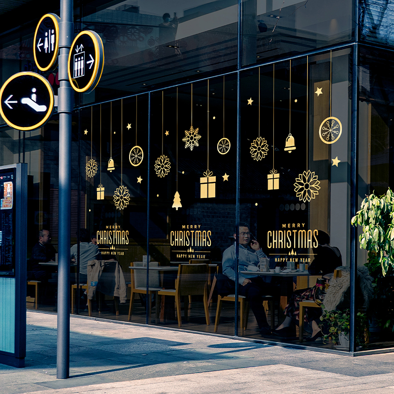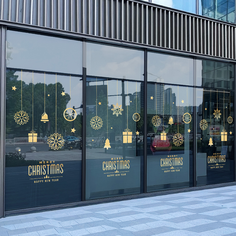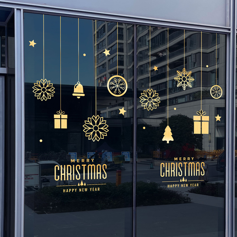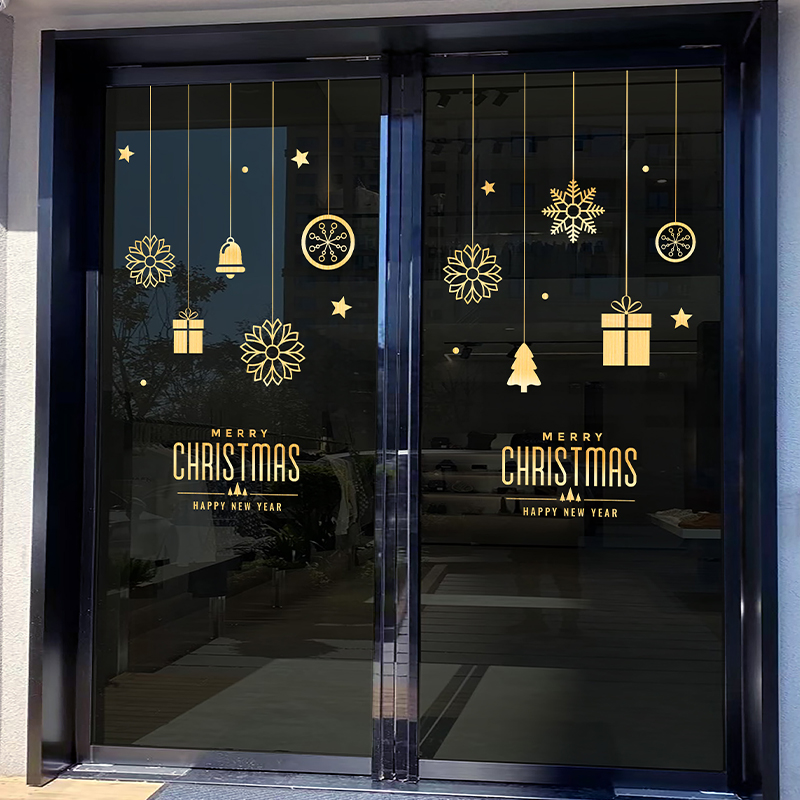 耶诞玻璃贴纸耶诞节静电贴场景布置墙面门贴烫金门饰店铺贴画装扮