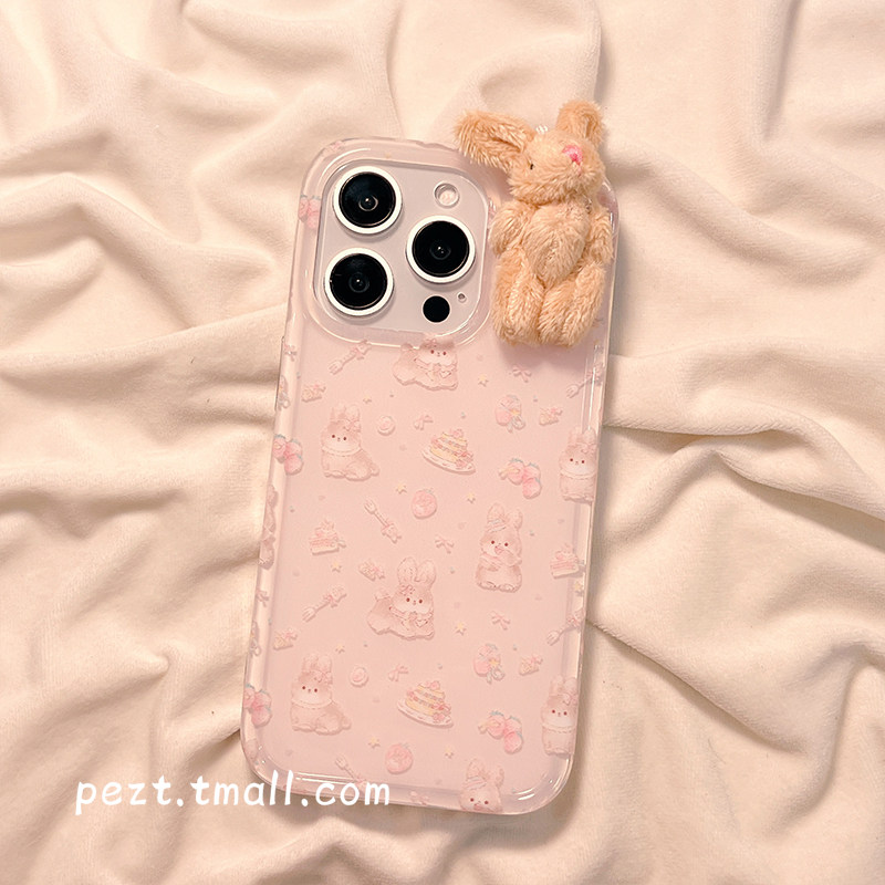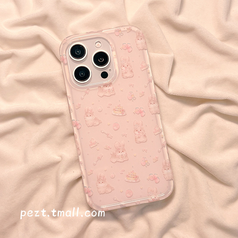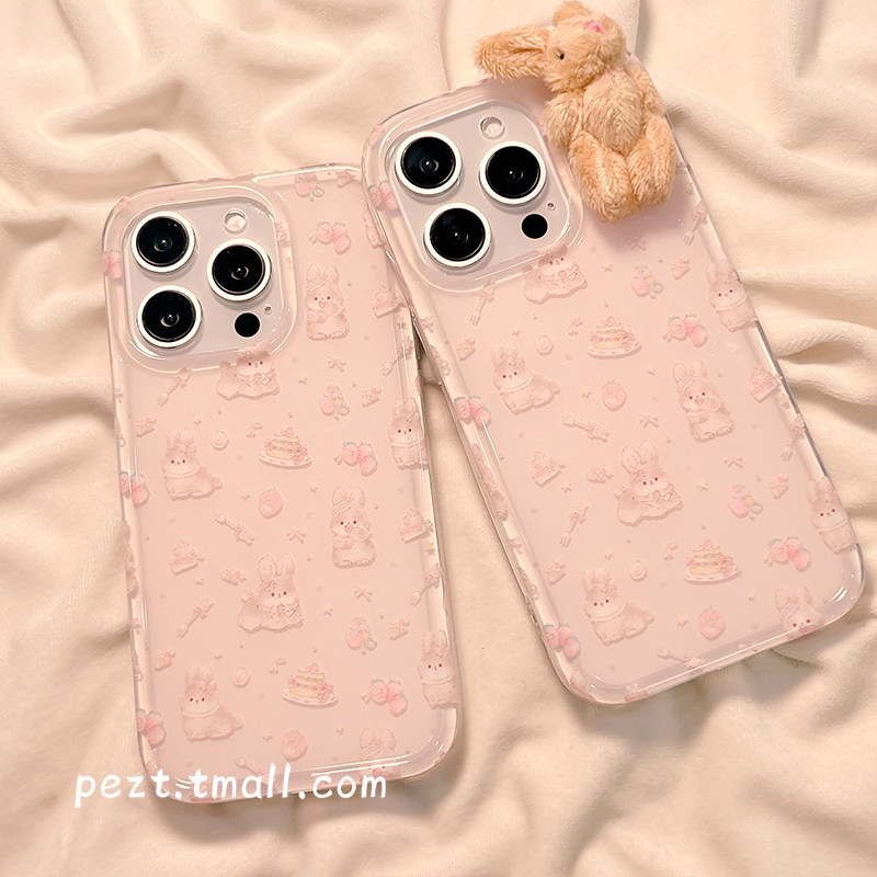 可爱卡通兔子蛋糕少女心适用苹果16手机壳日韩风iphone15promax草莓新款13防摔14ProMax硅胶15女16Pro保护套