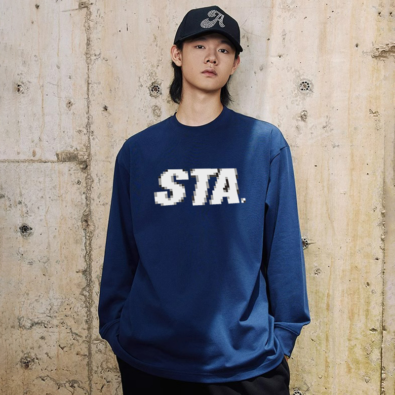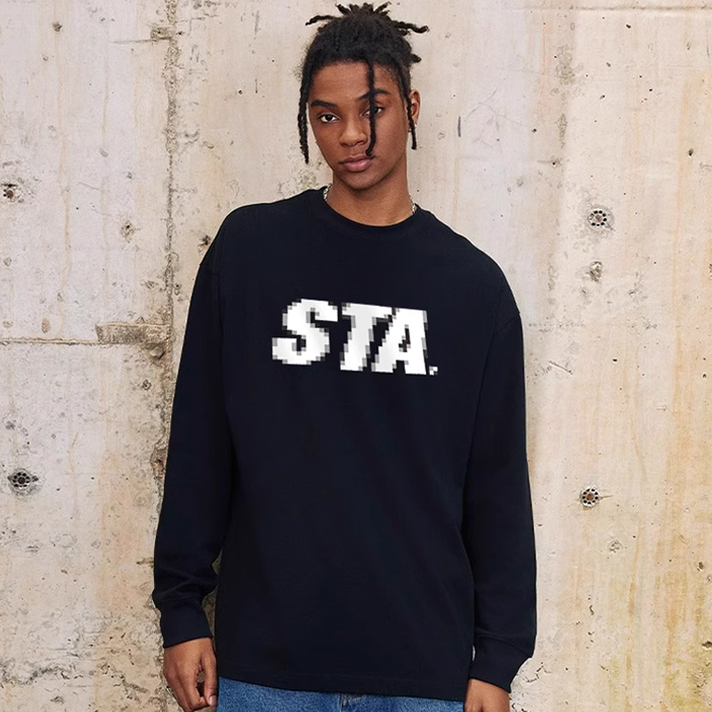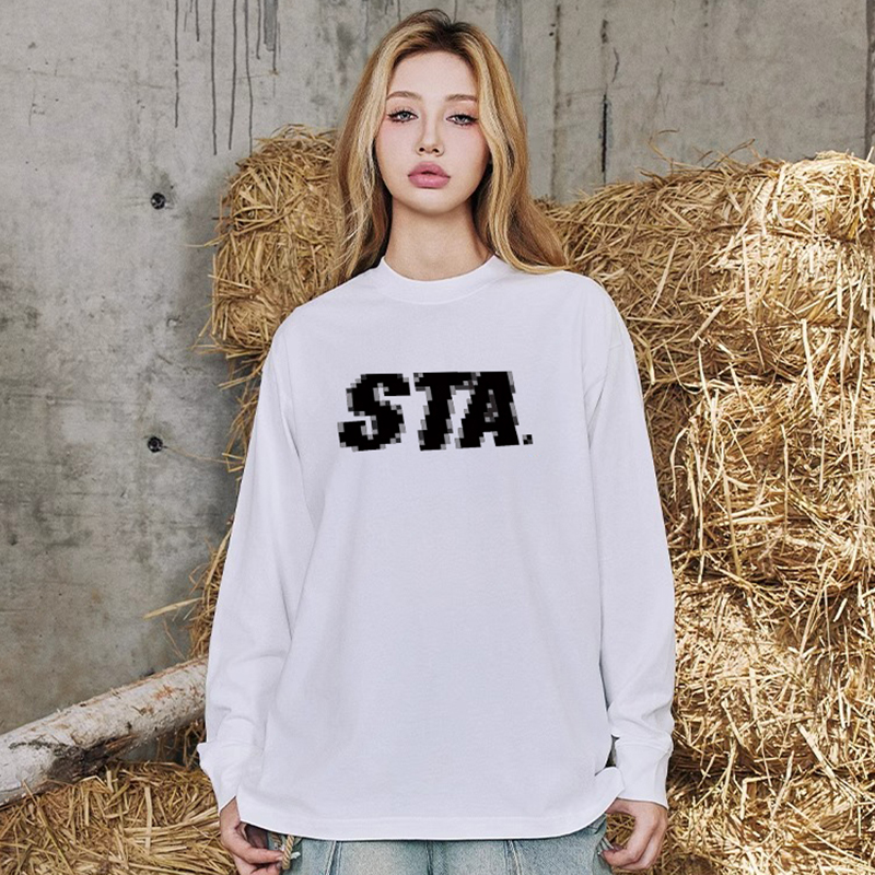 STA国潮美式数码化字印花长袖T恤男女纯棉休闲情侣体恤春秋打底衫