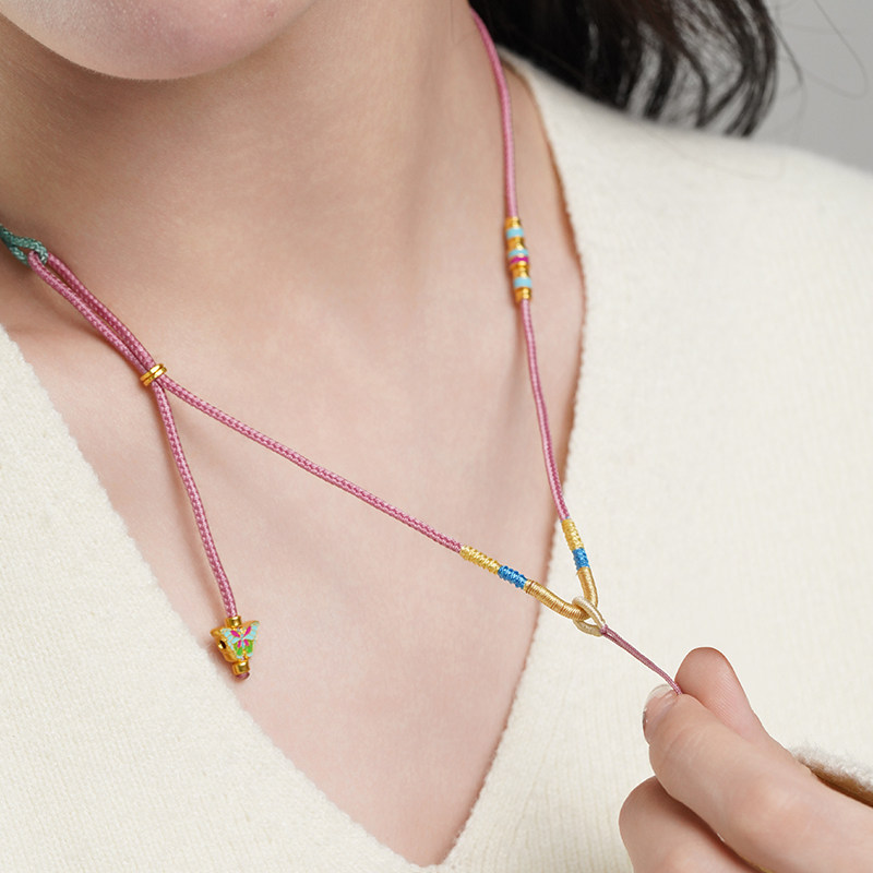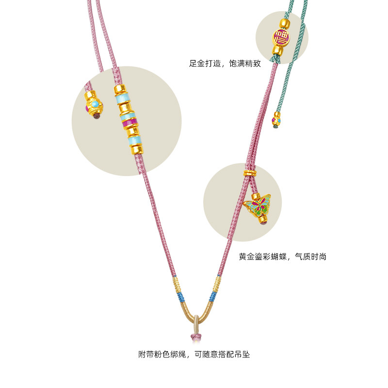 老庙黄金足金999鎏彩蝴蝶项链古法工艺多巴胺配色福运绵绵新中式