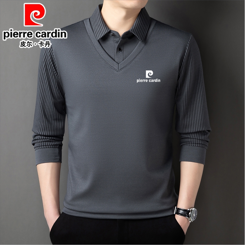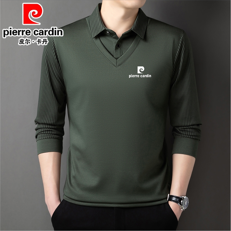 皮尔卡丹男士假两件2025秋冬新款保温针织衫加绒加厚保暖内衣男款