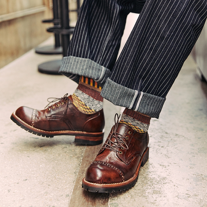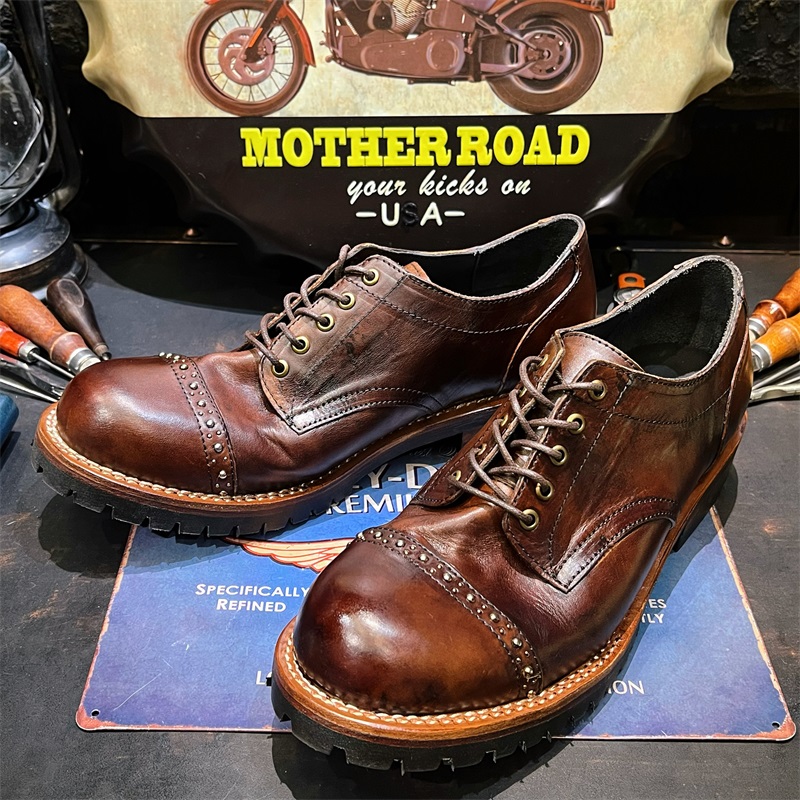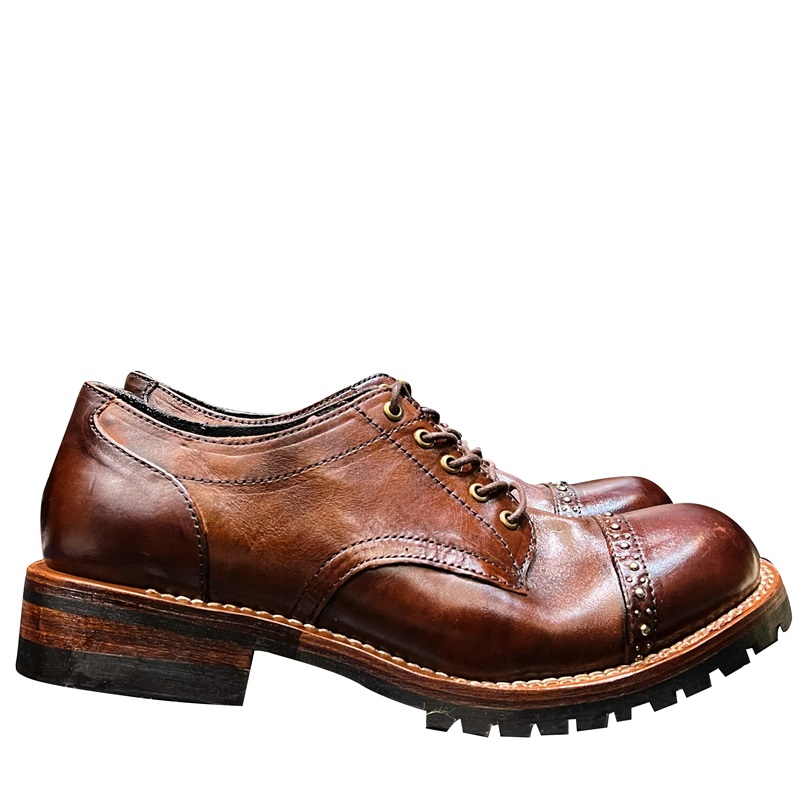 固特异美式复古英伦风马皮皮鞋棕色布洛克大头真皮手工装德比男鞋