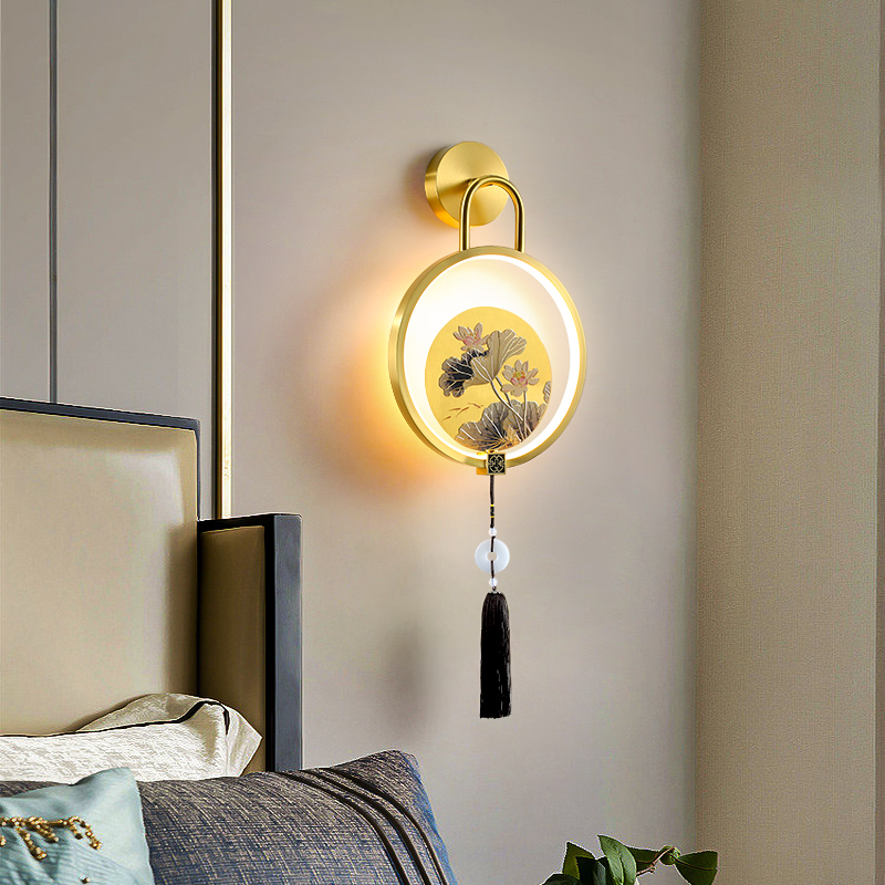 客厅全铜壁灯卧室床头灯新中式背景墙酒店会所走廊过道楼梯灯铜雕